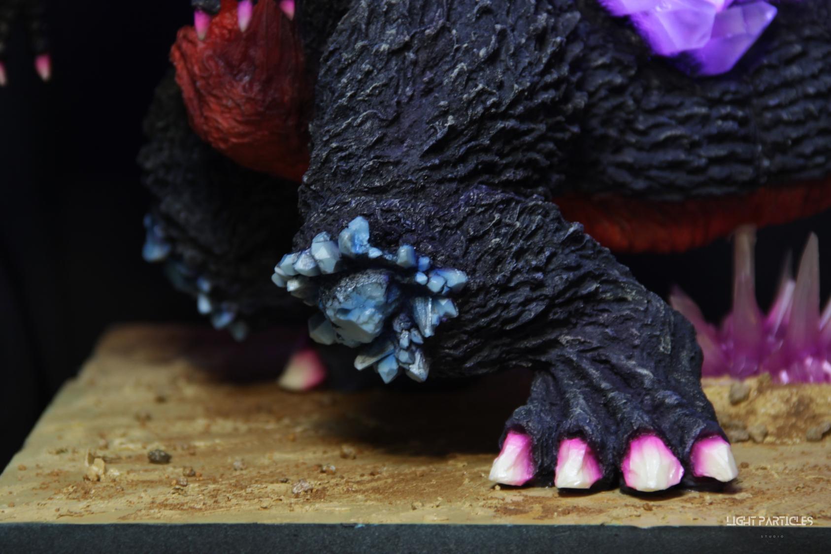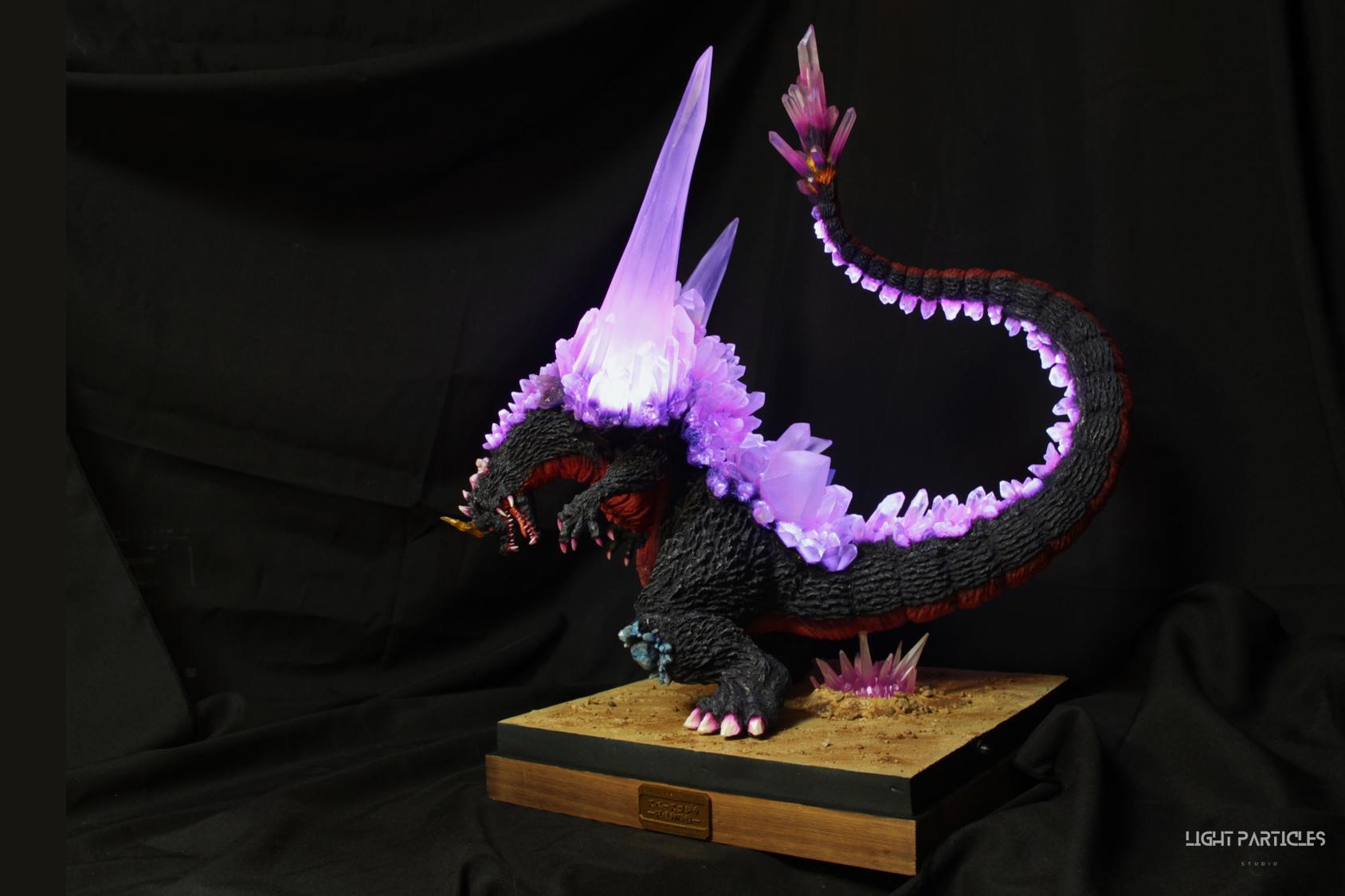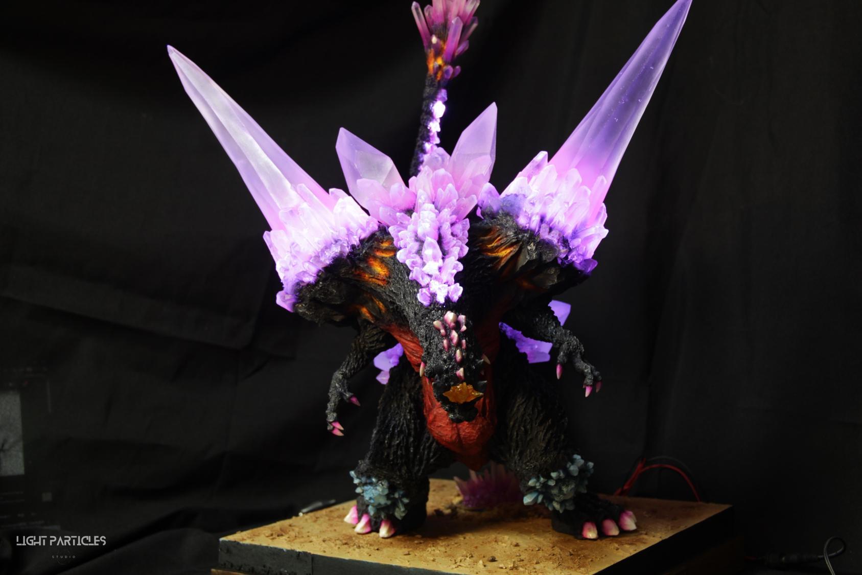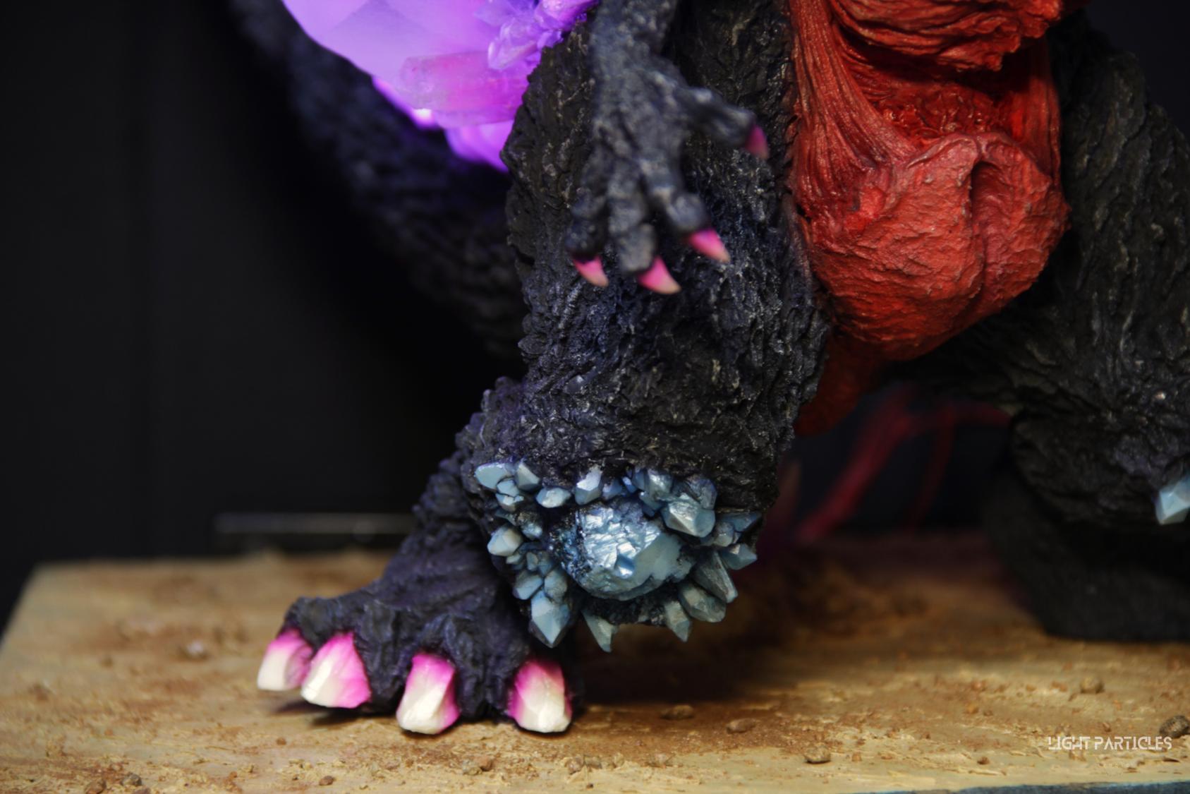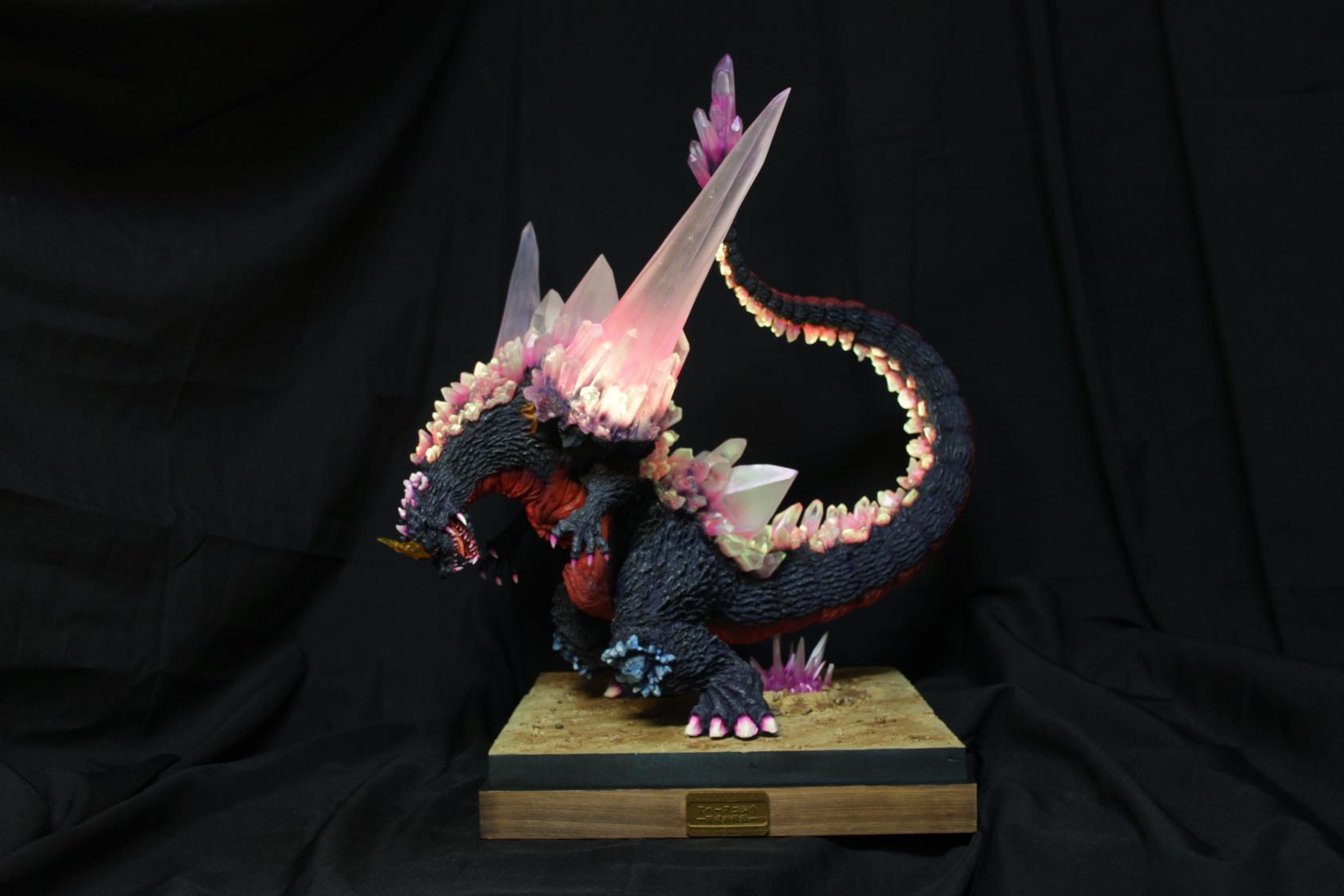 委託製作很有視覺衝擊的套件,田中博物館雕塑生產的 太空哥吉拉 -破壞神降臨-。肩膀的巨大水晶非常搶眼,絕對是這組套件最大的特色。參考工房網站的說明,套件的水晶是採用現實生活中的礦石與原石作為素材進行原型製作並採用透明件設計,非常特別。模型也有保留內部空間方便安裝燈光元件。