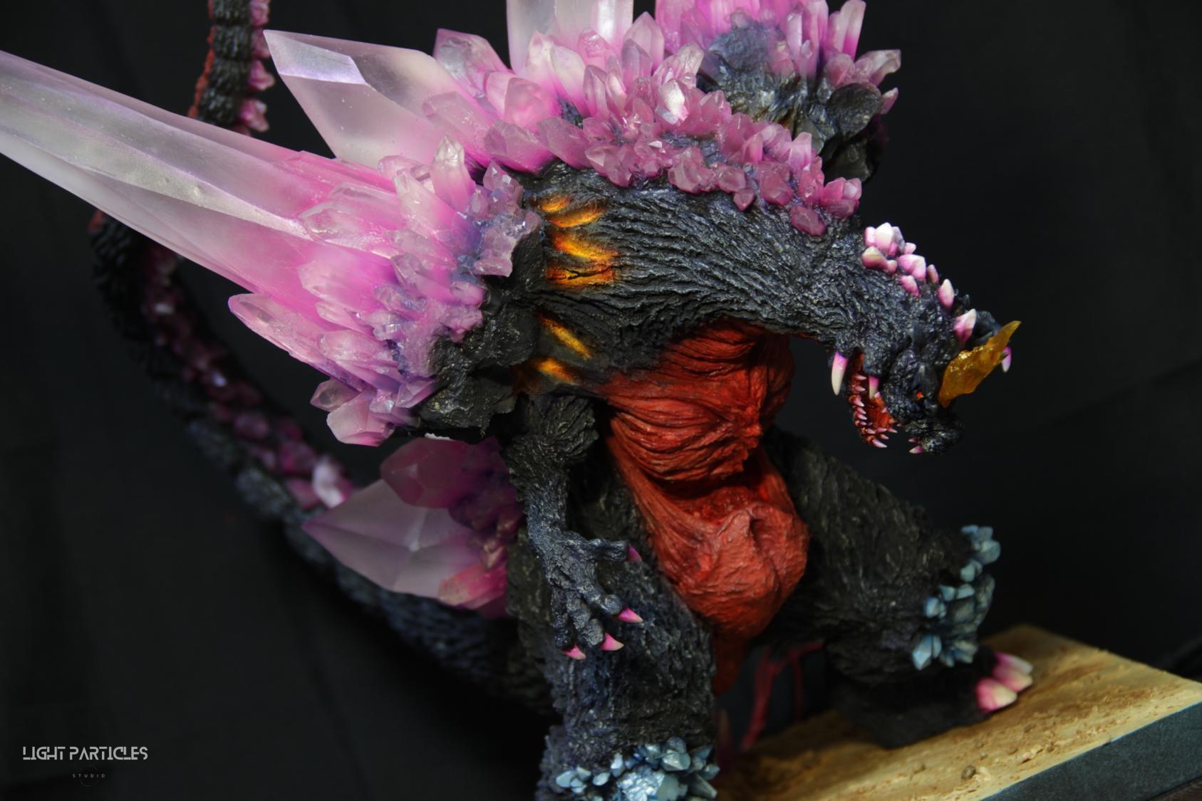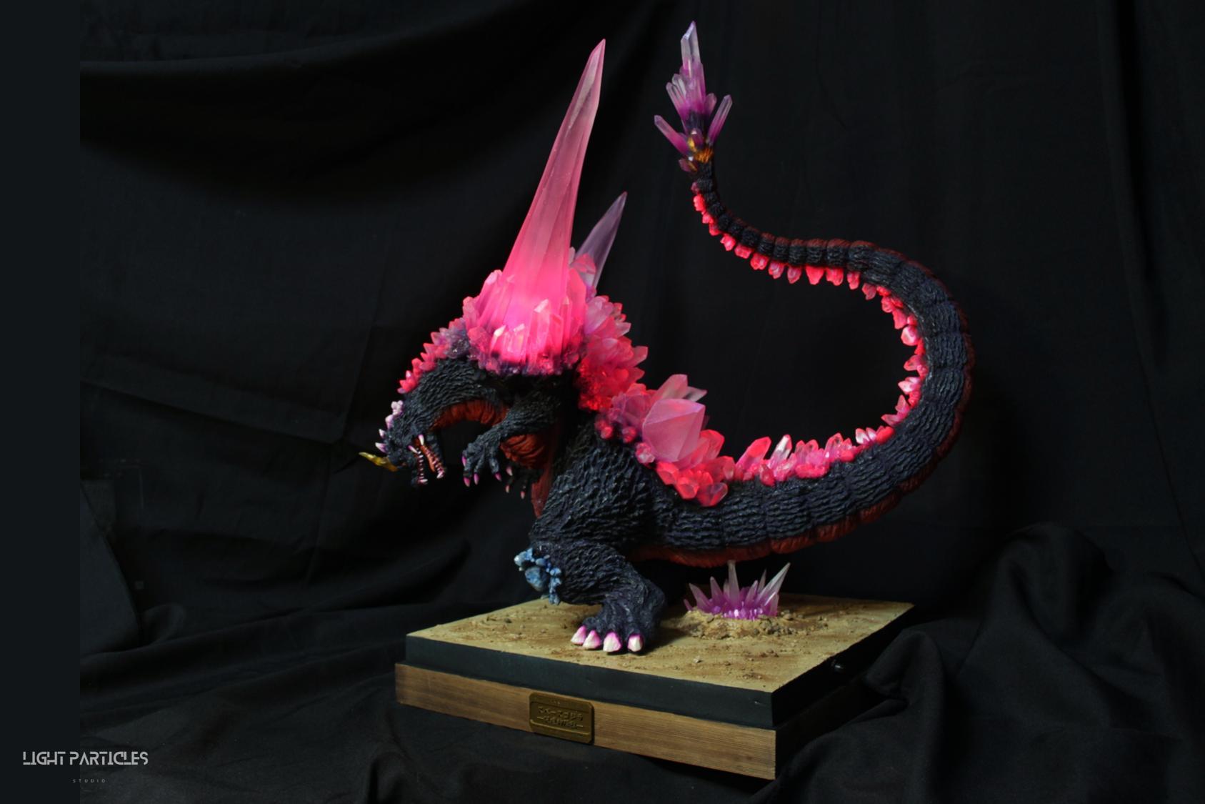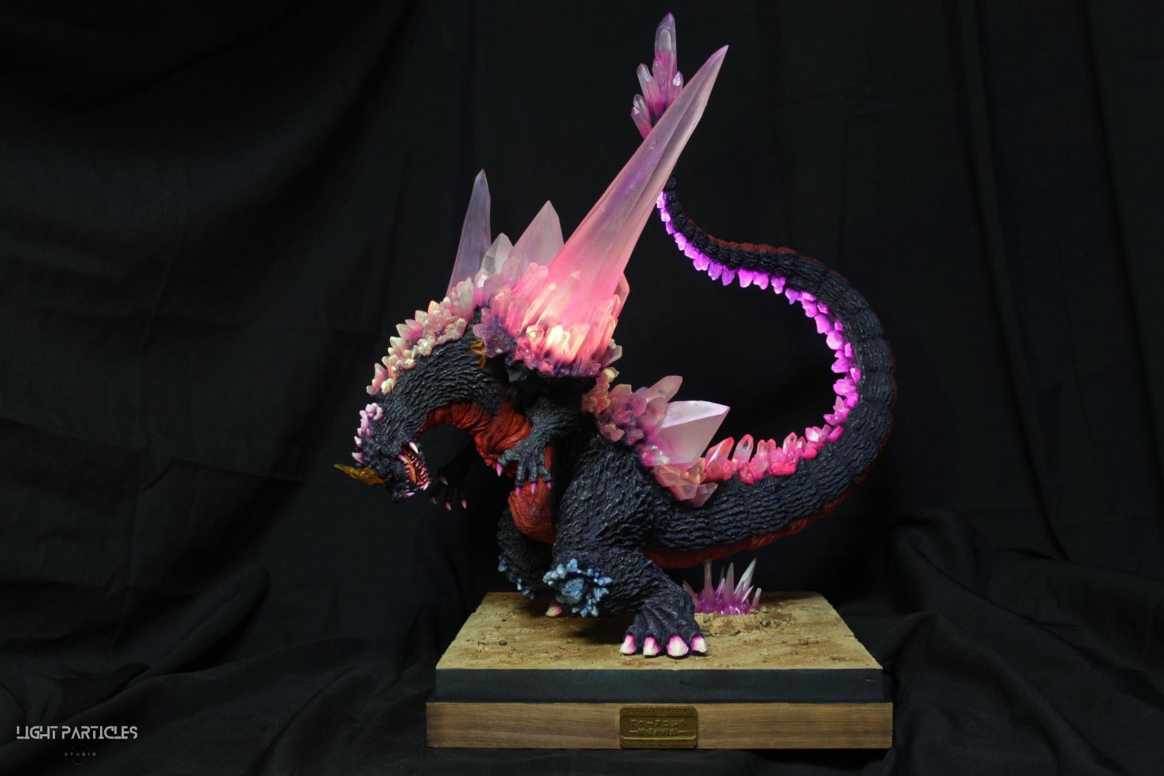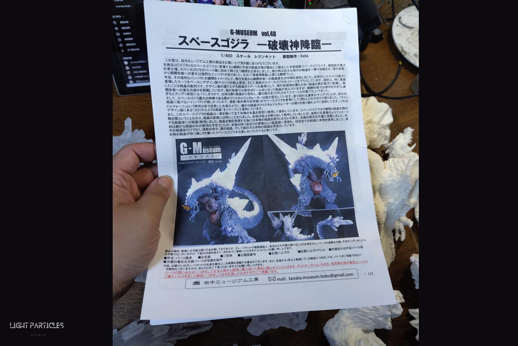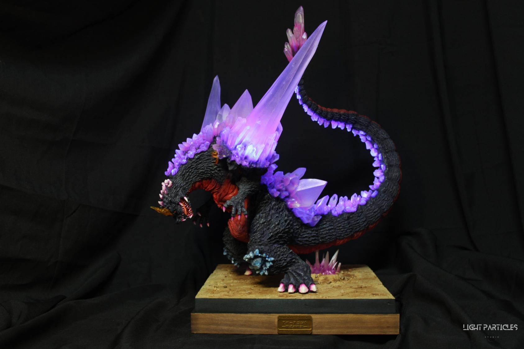 委託製作很有視覺衝擊的套件,田中博物館雕塑生產的 太空哥吉拉 -破壞神降臨-。肩膀的巨大水晶非常搶眼,絕對是這組套件最大的特色。參考工房網站的說明,套件的水晶是採用現實生活中的礦石與原石作為素材進行原型製作並採用透明件設計,非常特別。模型也有保留內部空間方便安裝燈光元件。