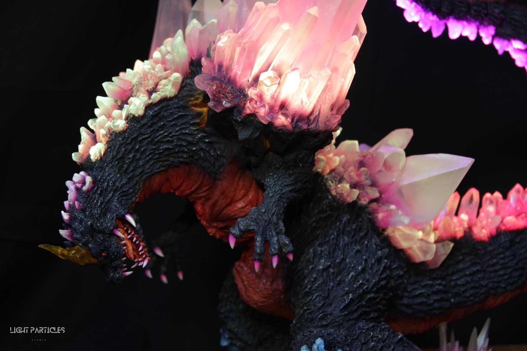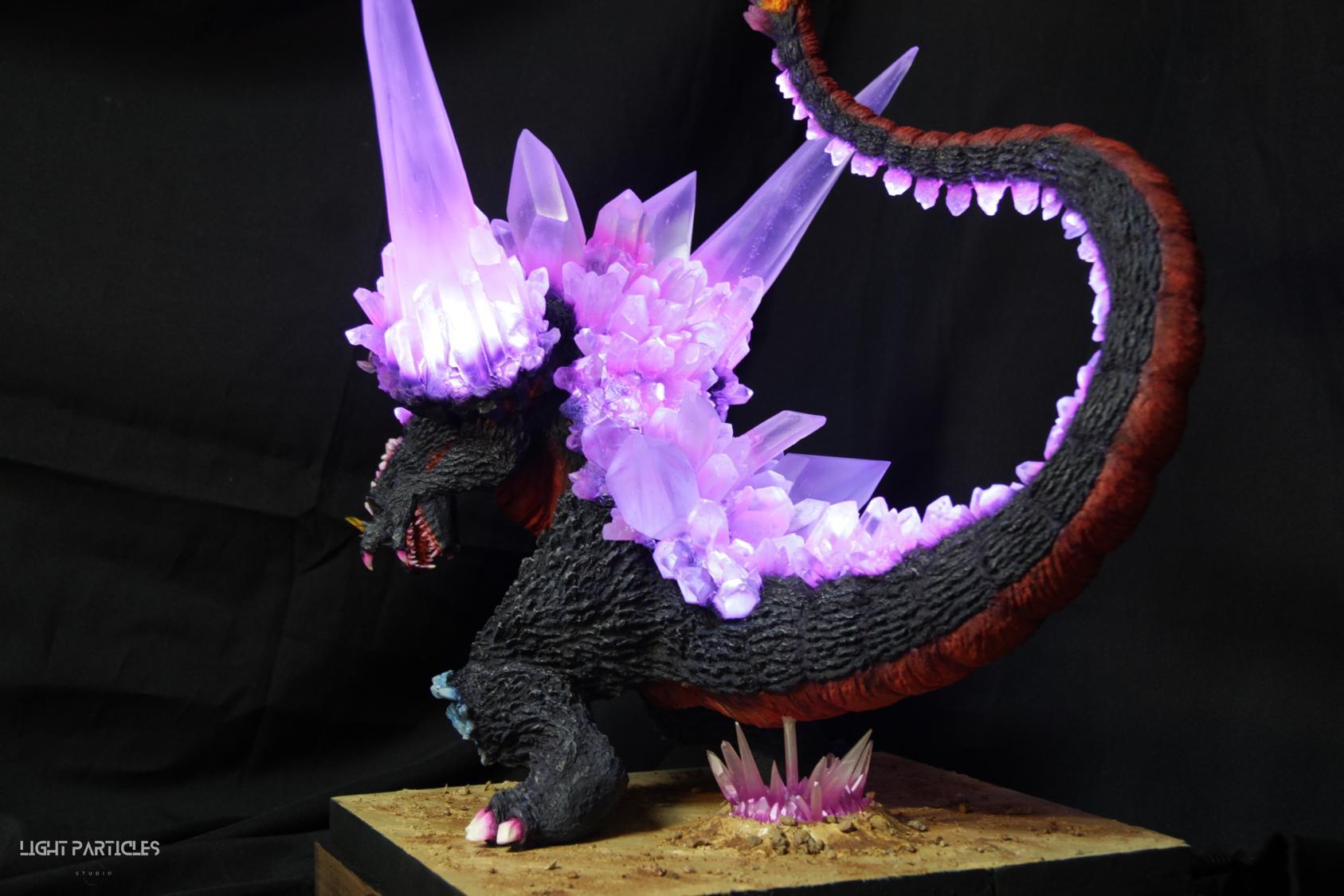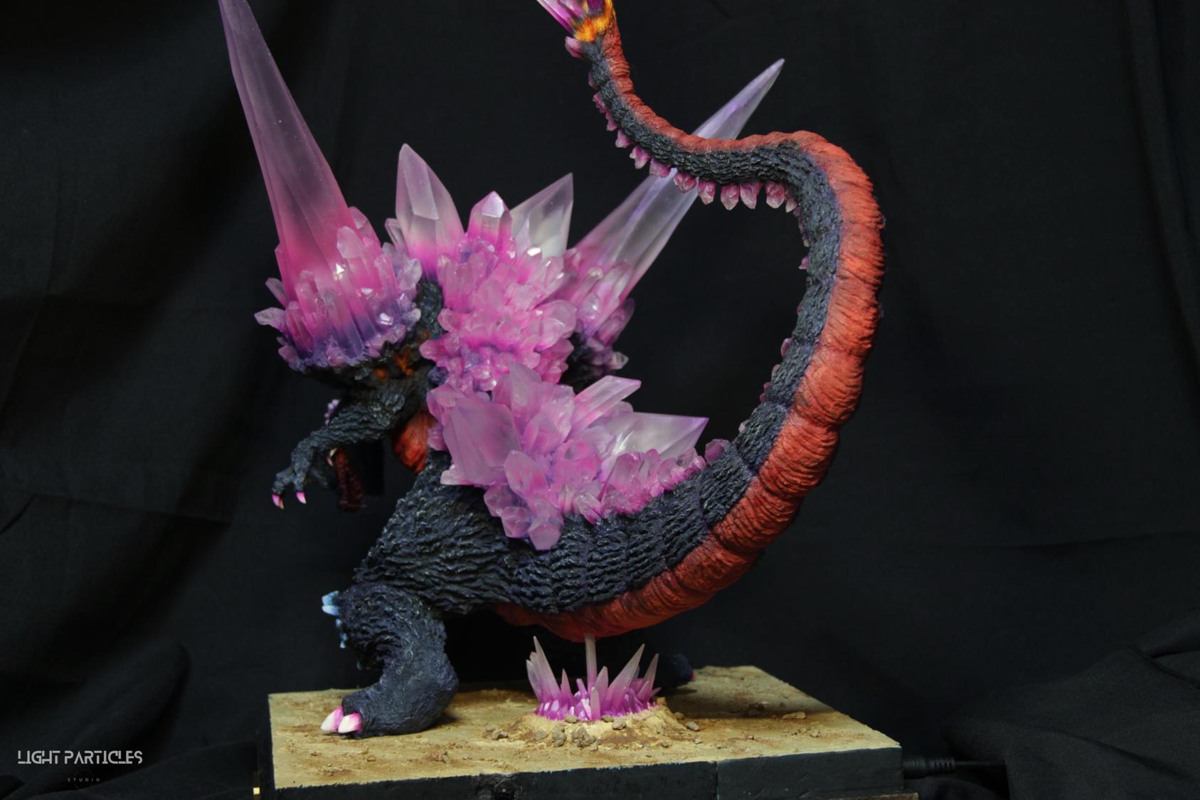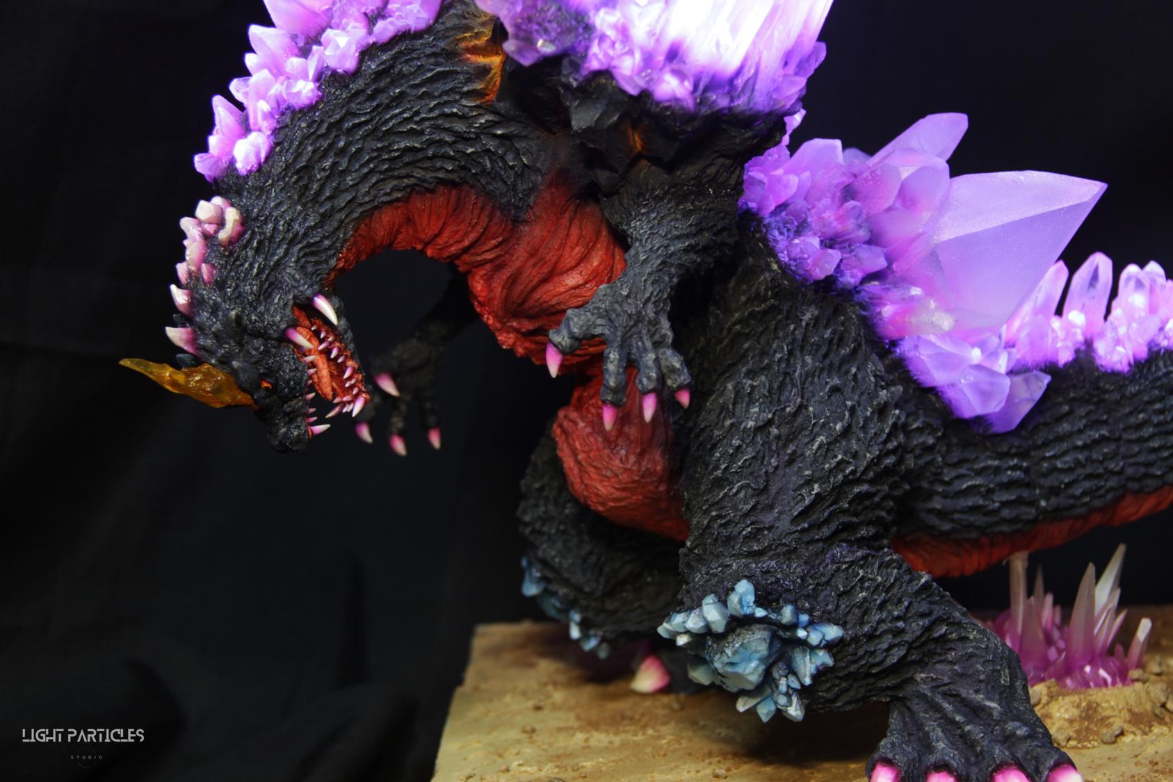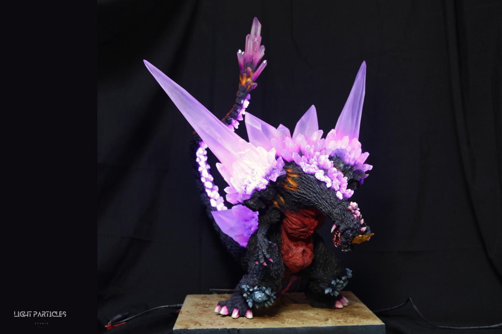 委託製作很有視覺衝擊的套件,田中博物館雕塑生產的 太空哥吉拉 -破壞神降臨-。肩膀的巨大水晶非常搶眼,絕對是這組套件最大的特色。參考工房網站的說明,套件的水晶是採用現實生活中的礦石與原石作為素材進行原型製作並採用透明件設計,非常特別。模型也有保留內部空間方便安裝燈光元件。