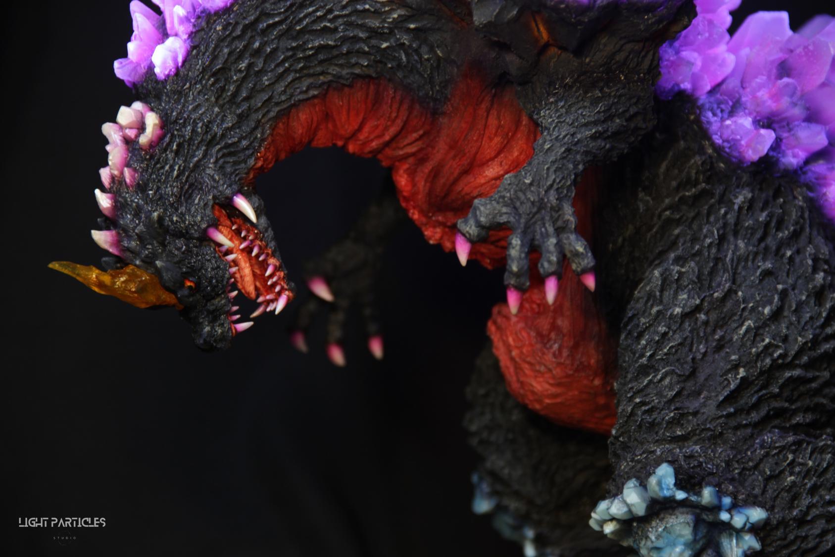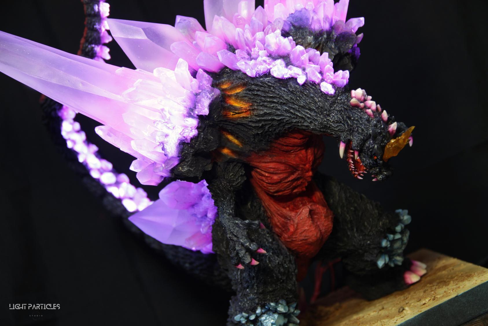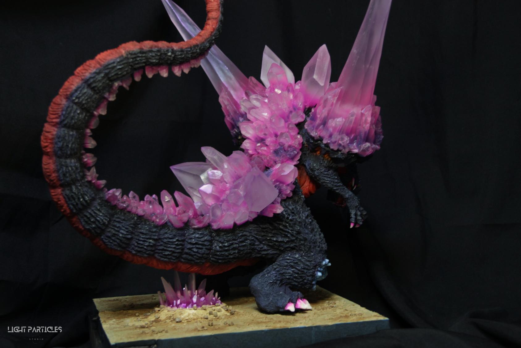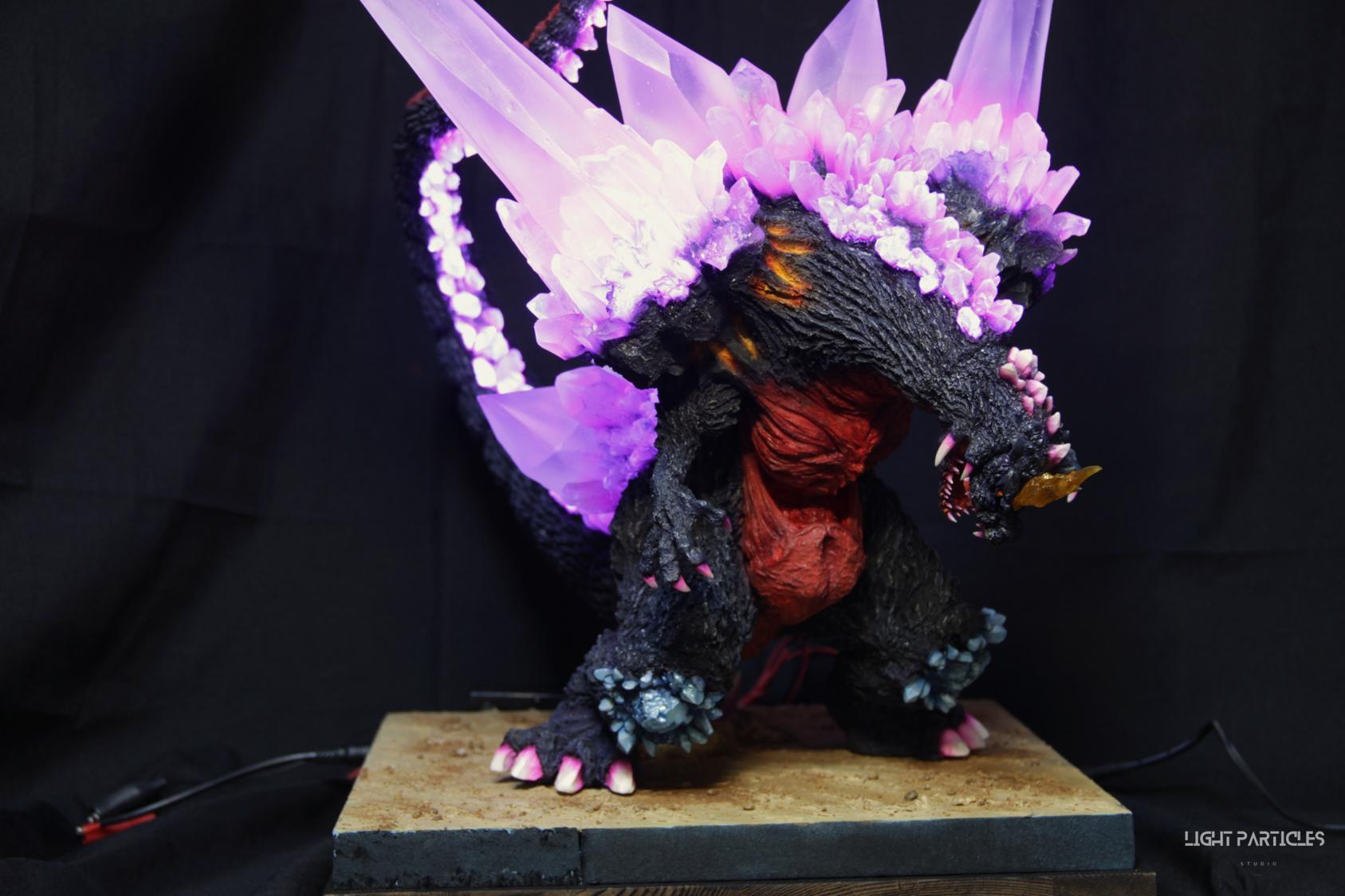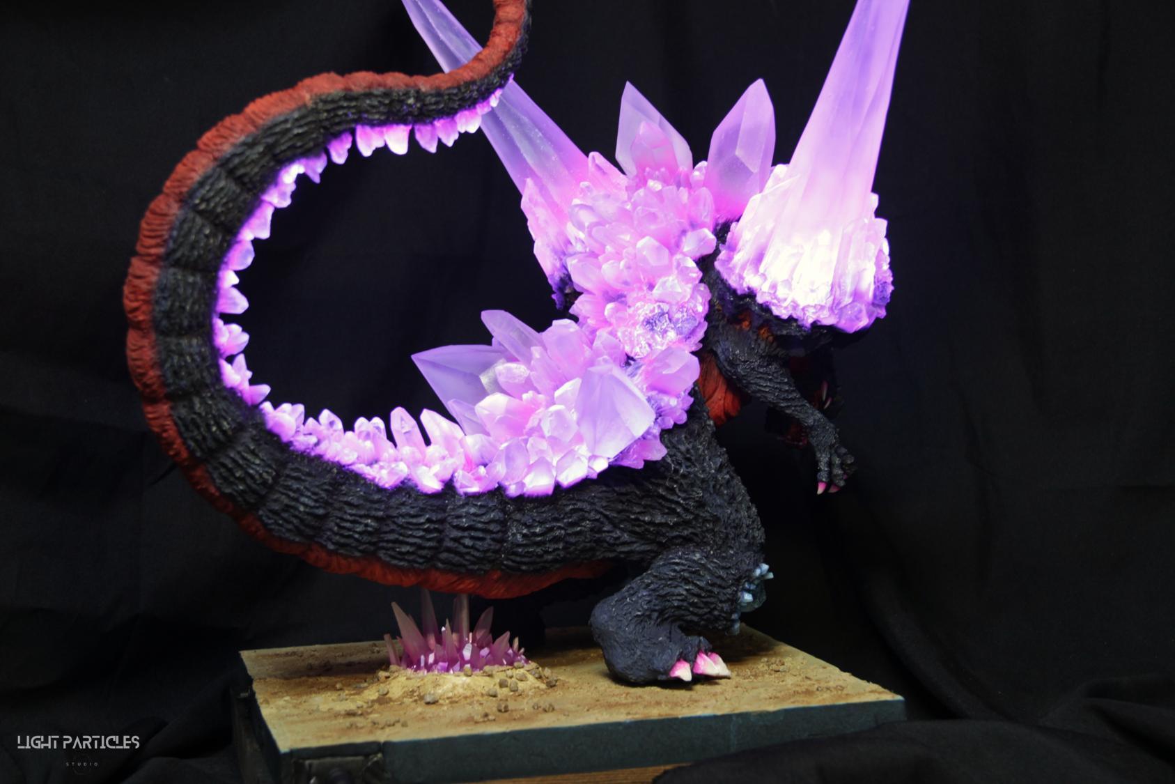 委託製作很有視覺衝擊的套件,田中博物館雕塑生產的 太空哥吉拉 -破壞神降臨-。肩膀的巨大水晶非常搶眼,絕對是這組套件最大的特色。參考工房網站的說明,套件的水晶是採用現實生活中的礦石與原石作為素材進行原型製作並採用透明件設計,非常特別。模型也有保留內部空間方便安裝燈光元件。