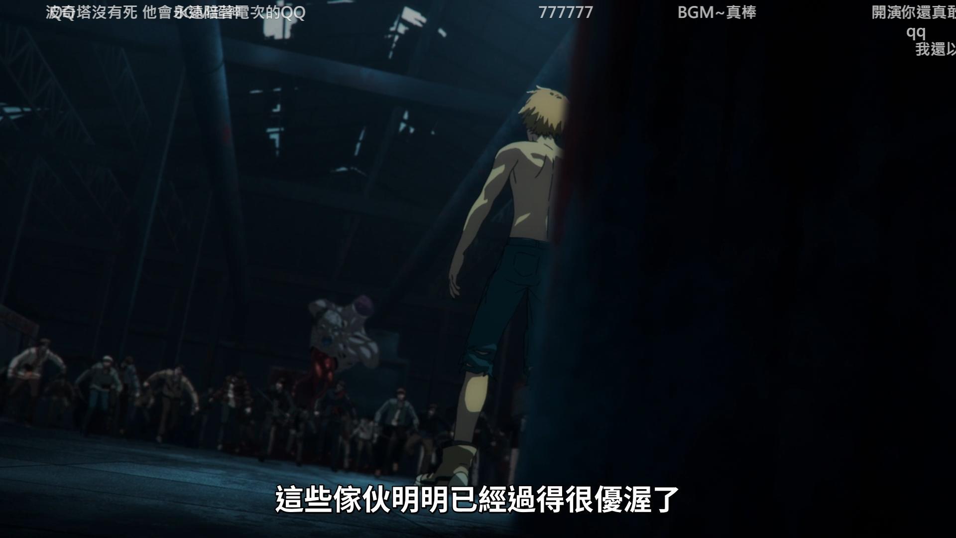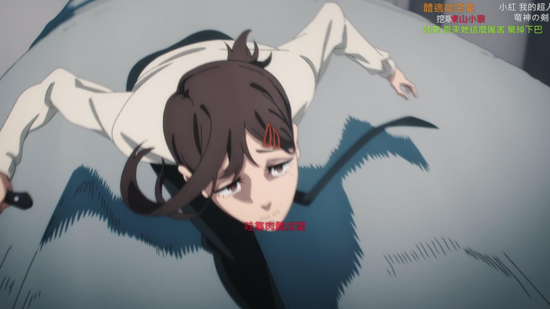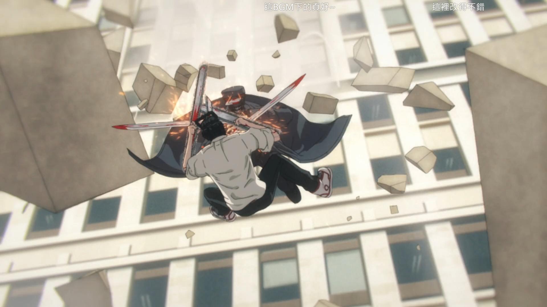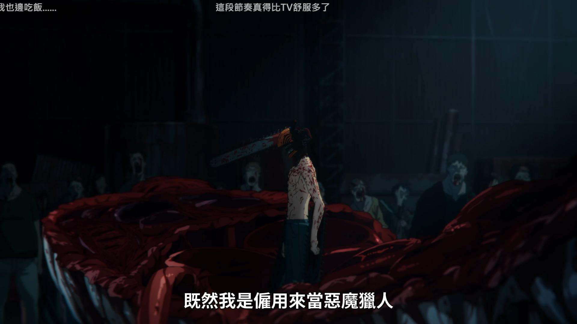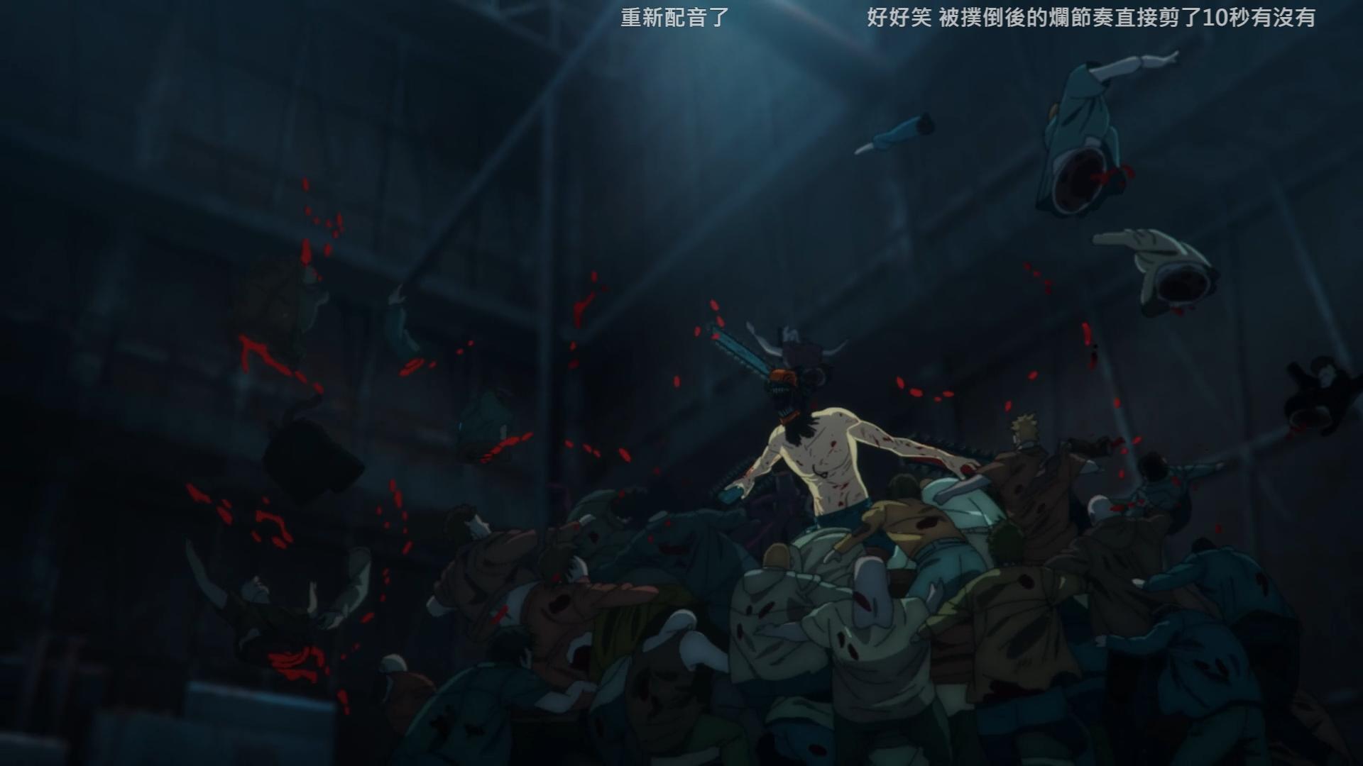 這個也是看到有人提去比較,就是差了一個逗趣的BGM嘛。這種修改我是認可的。但是這會回到我說的,如果你覺得這段不夠瘋,僅僅是有無音樂的差異,那這不是電影版那種轉變可以比較的。也就是說這完全不像是"救了鏈鋸人"的感覺。會比較接近某些電視劇用罐頭笑聲來提醒人一樣,同樣是有些人不喜歡的。而我大多數的例子,你也會發現這些修改絕對不是"補上不足的音樂"。