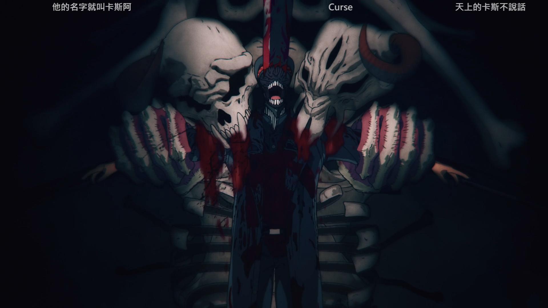 總集篇:一個鼓聲節奏的音樂,刪減掉一部分詛咒惡魔的特寫,然後接上一個斷裂的音效。