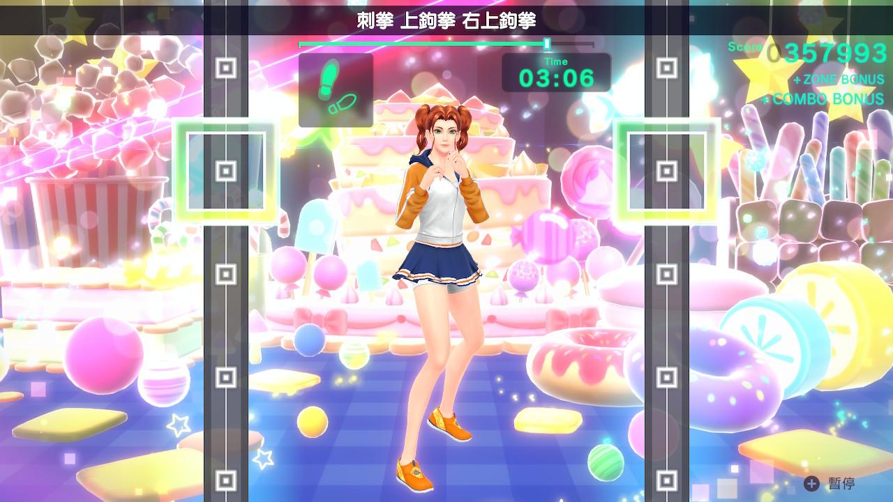 然後來說一些比較無感的部分,首先就是這一代多了很多背景特效,隨著遊戲進行,場地就會跑出各式各樣的華麗3D特效。可以理解做出這些特效,可以讓關卡本身不會太單調。但玩家都專注在進行運動上,看畫面做出指定動作都來不及了,對這些特效改變真的沒空去關注,反而覺得很多餘。不過我試著完全關掉之後又真的很單調,於是還是有打開。