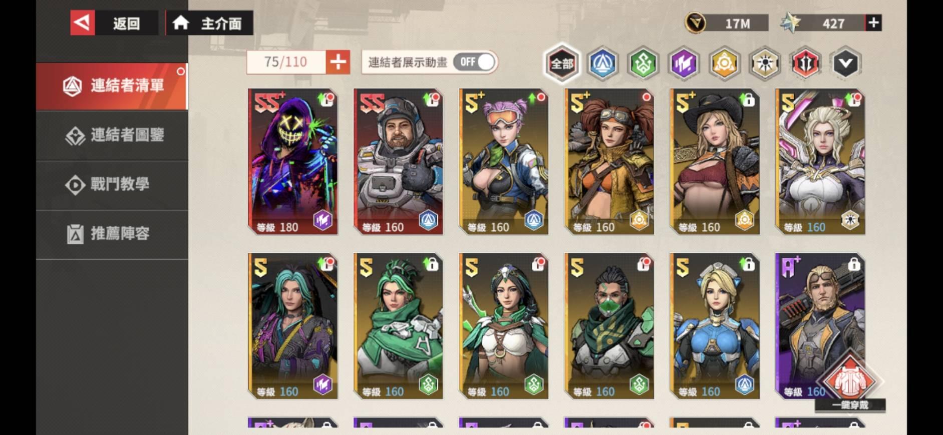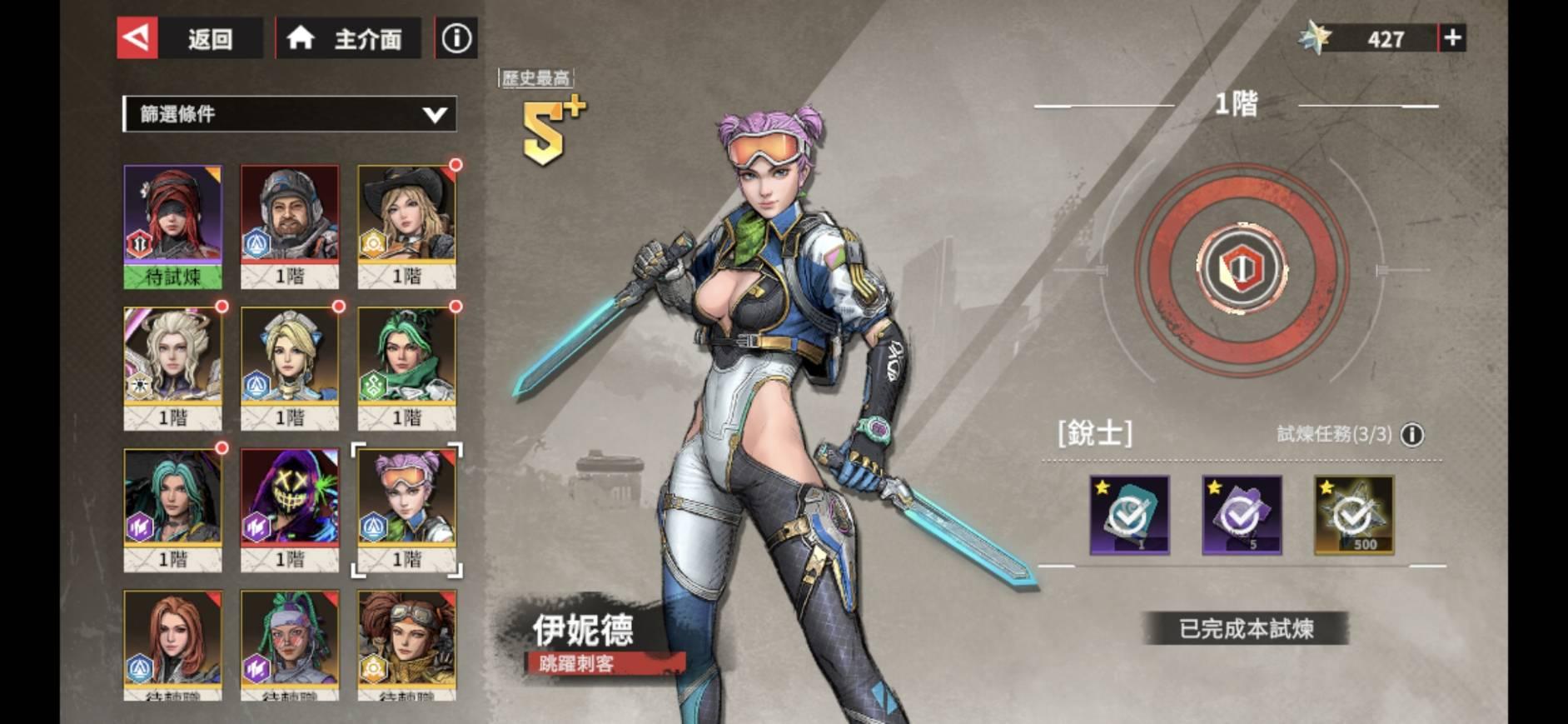 菁英連結者(紫色)初始A階,最高SSS 5顆星。