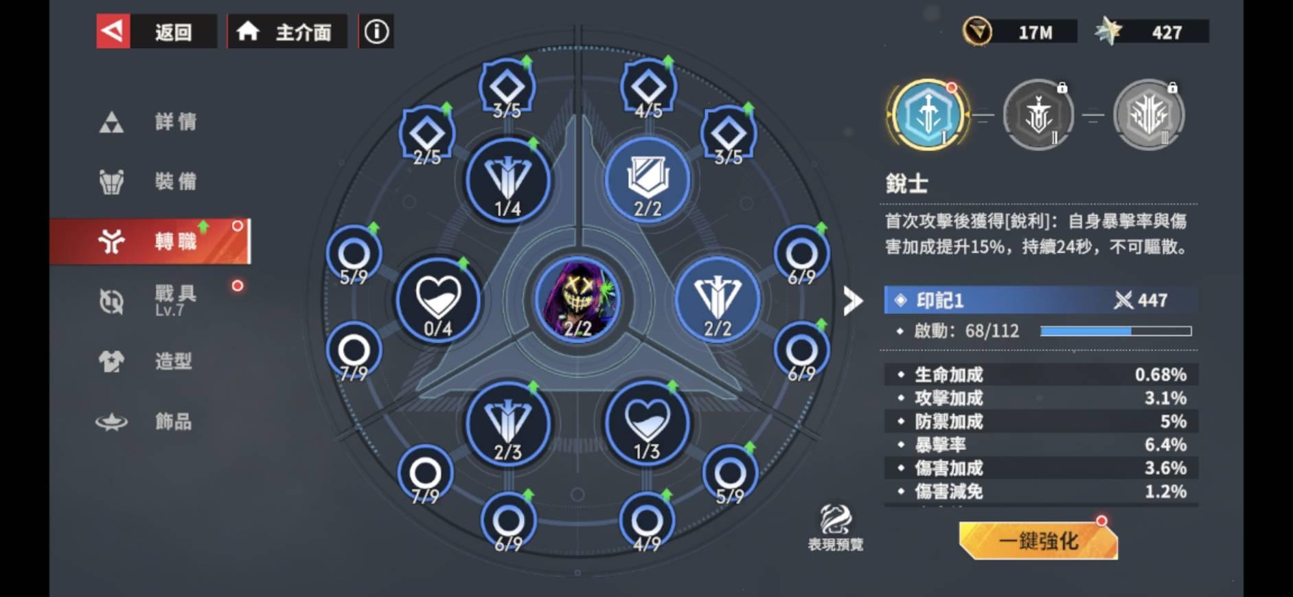 1.晶片研發:角色進階或完成連結試煉會拿到奈米晶片,用晶片來點這裡的天賦樹,開啟轉職職業等。