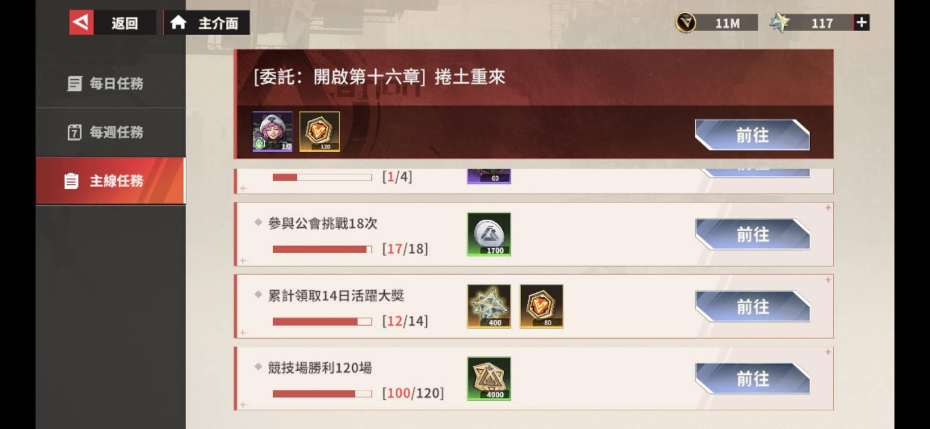 1.每日和每週任務可以領到輝石、連結憑證、空投信標。