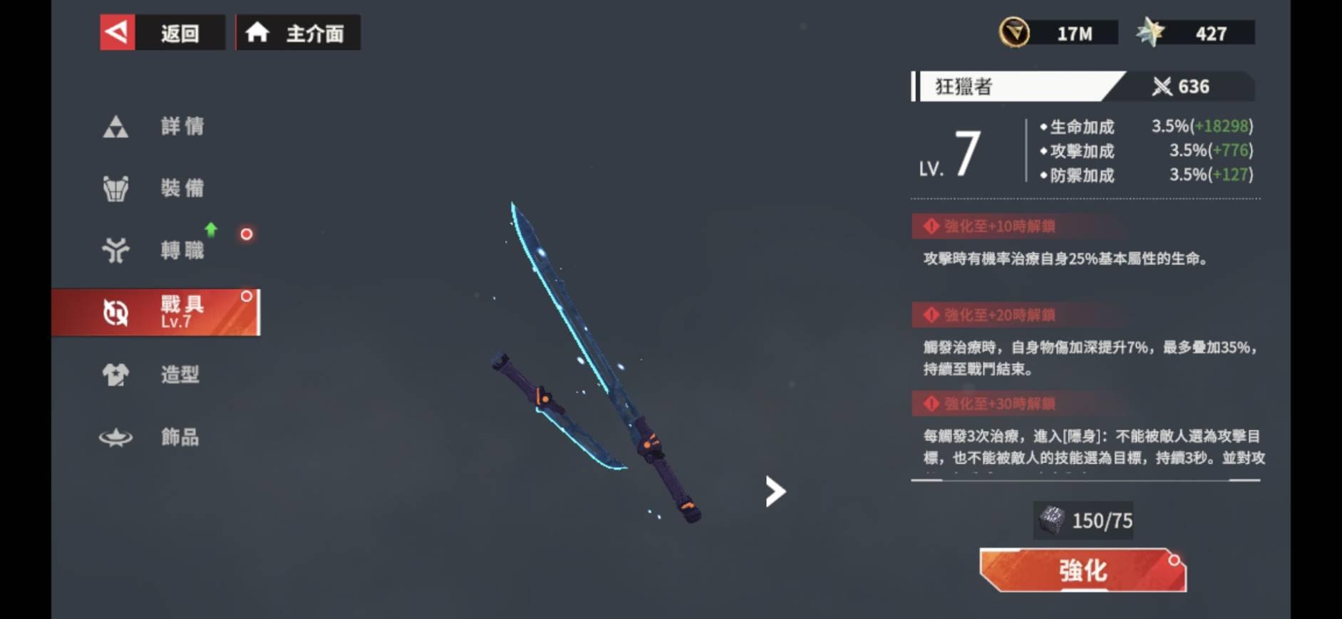 3.裝備(強化裝備需要消耗大量其他裝備)。