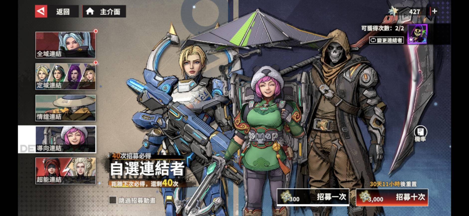 4.導向連結:1抽消耗300輝石,自選1個連結者(藍綠紫黃),40次招募必得,提前抽到效果歸零,有冷卻時間。