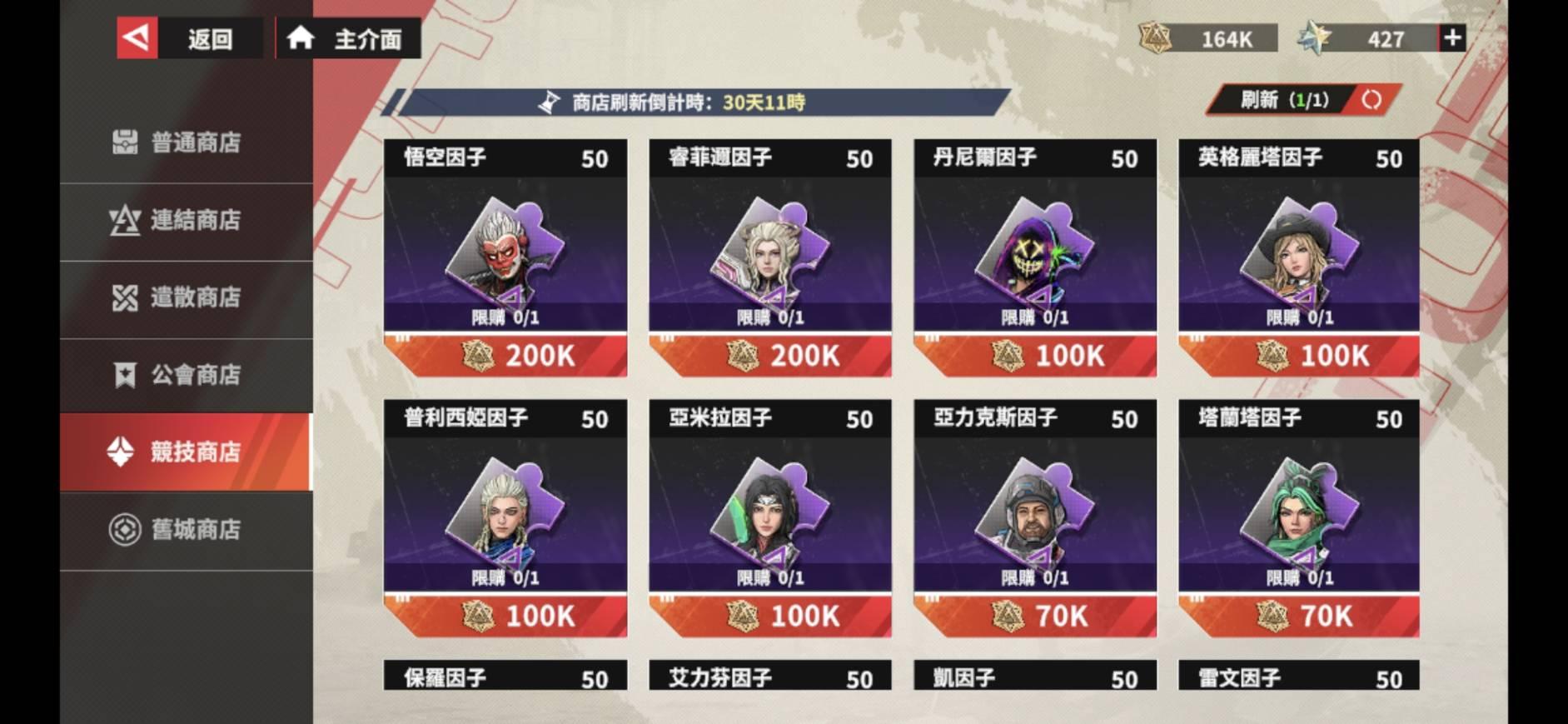 (5)競技商店:每月1日刷新,清單固定,貨幣是競技場的榮譽之證,優先換200K的連結者。