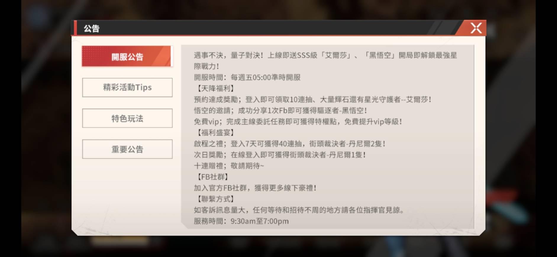 六、目前公告每週五開新服,新玩家應該是要在新服玩才能從頭跟上活動時程。