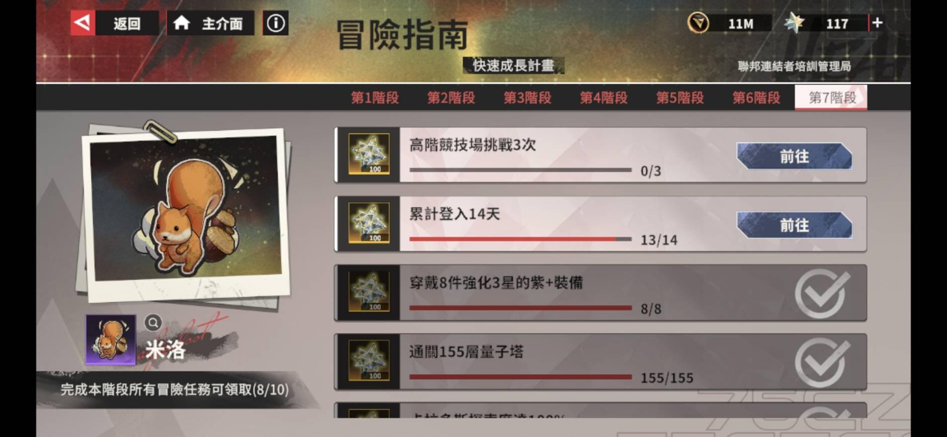 3.每過一關主線可以領到一隻角色和特權點,每日活躍集滿天數也有特權點。