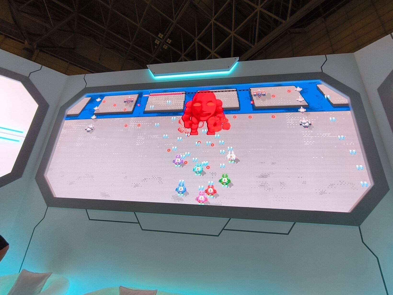 小遊戲跟去年一樣作成復古街機感,今年是射擊遊戲由8人同時進行,過程中可以進行合體攻擊分數會加倍,關卡跟BOOS是用各種手遊作為主題設計,每個玩家都能得到自己選擇的手遊主題周邊隨機一種,第一名的玩家可再得到一件TGS25限定的衣服
