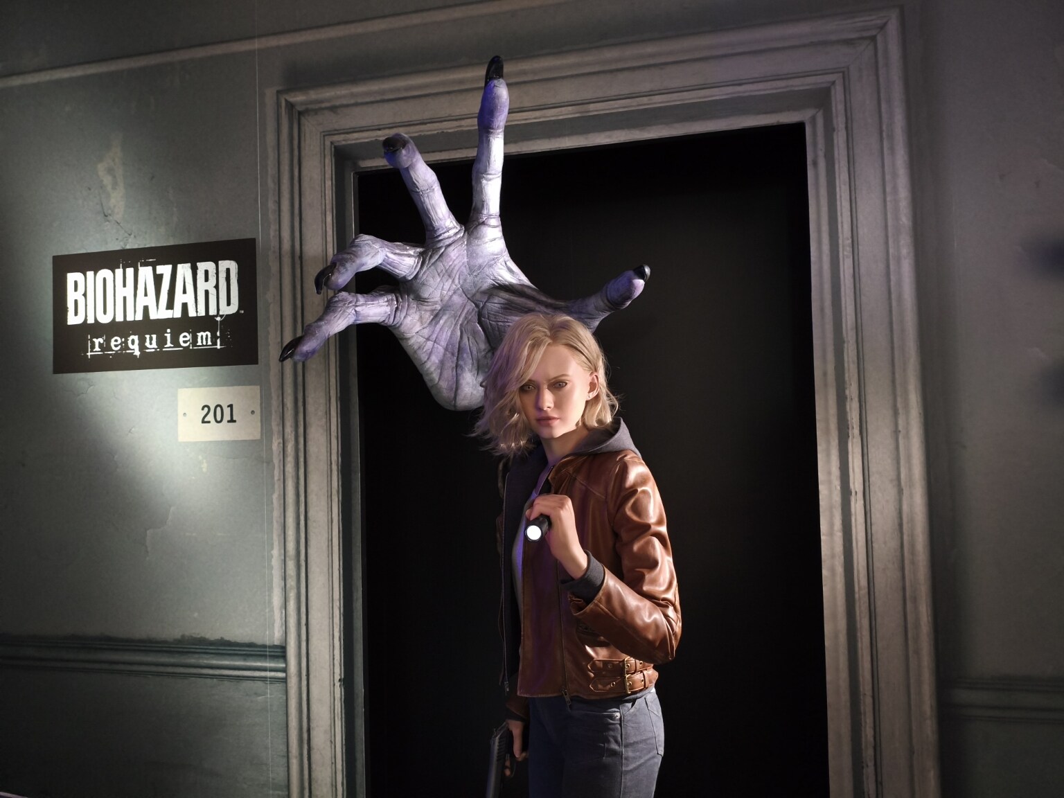 場外有扮演喪屍的演員徘徊,還有女主角的等身像展示