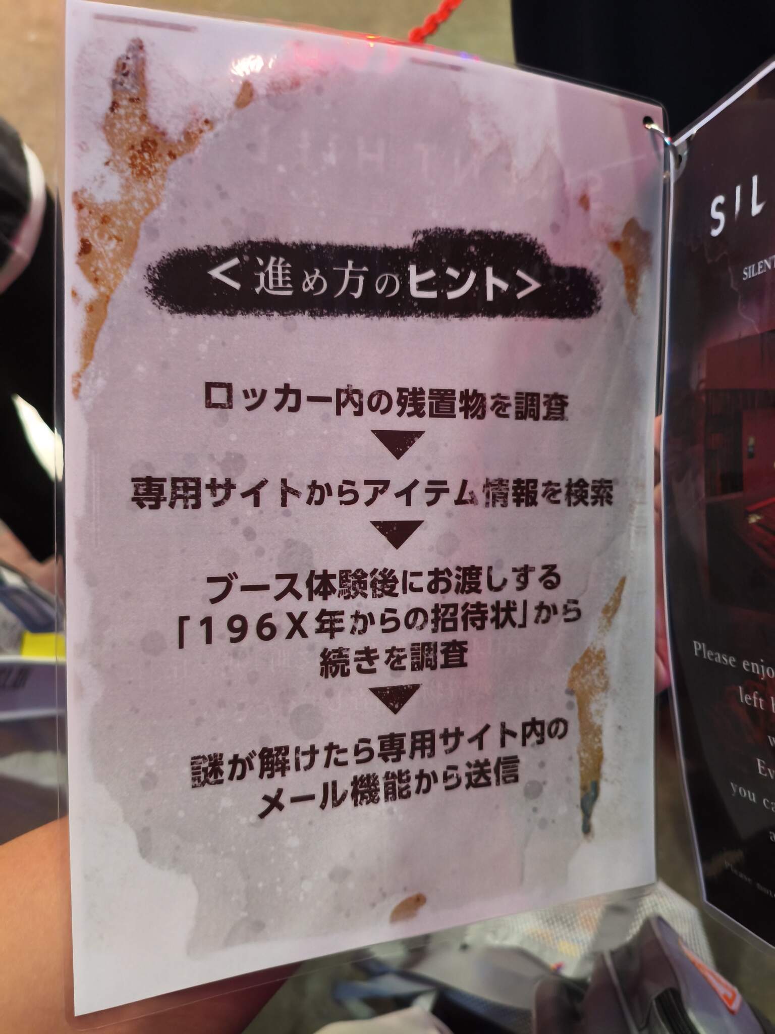 進場前會給你一個發光的石頭跟讓你掃搜尋網站的QR,進場後有很多置物櫃要自己打開,用石頭靠近後調查,只要發紅光震動就能在網站搜尋物品名稱會得到線索,看不懂日文的話此展覽就是為了拿贈品,得不到任何的樂趣