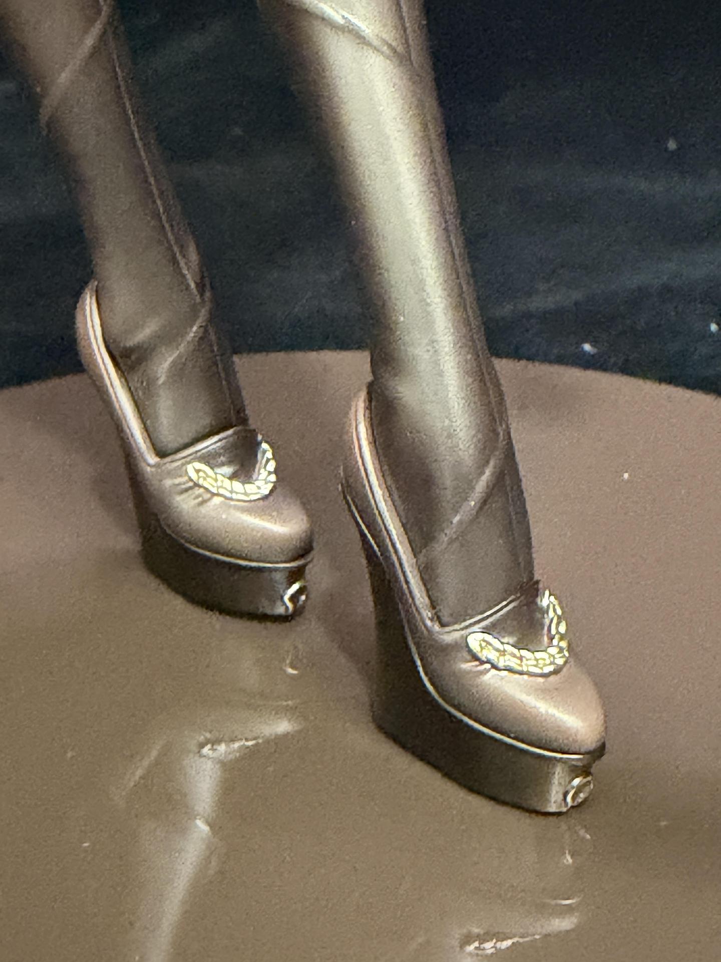 底部是高跟長薛,上端和鞋底前端都有金屬裝飾,屬於辣妹元素,塗裝精細