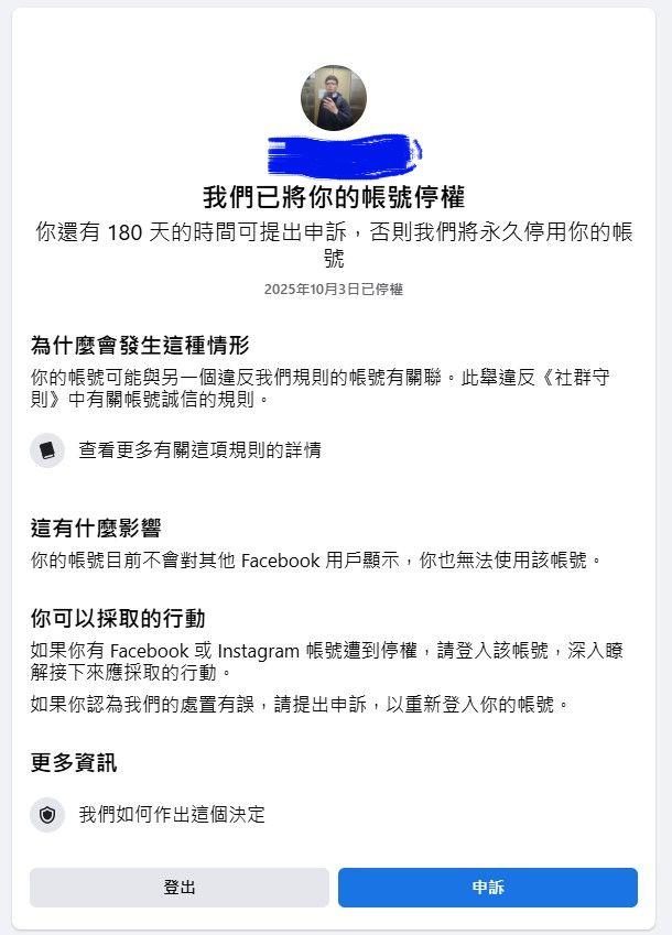 而且申訴高機率被直接永久封鎖,目前官方的頁面沒有任何的渠道可以申請人工審核,搜尋一下,至少在台灣這邊被封鎖的人不少,而且多半跟我一樣被誠信原則這種模糊的原因封鎖,而且網路上流傳的解鎖訊息,在操作上也跟實際看到的頁面不太一樣;詢問Gemini及自己查詢一些近期的案例,似乎寄實體信件到meta總部那邊是最有希望的,但這時間約要兩個月以及850左右的郵遞費用