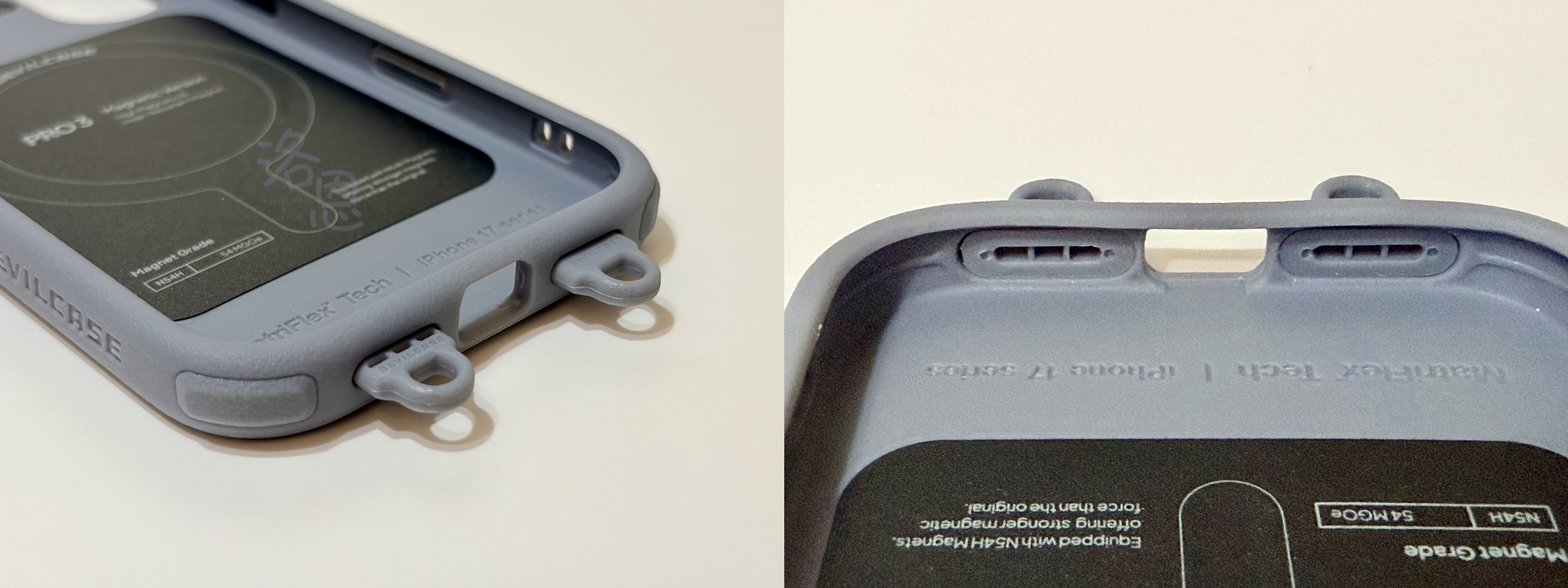 以前比較常用墊片式掛繩,這個殼在 USB Type-C 充電口旁也留了一個小通道,推測就是預留給墊片使用。之後如果有用到掛繩再來試試看。
