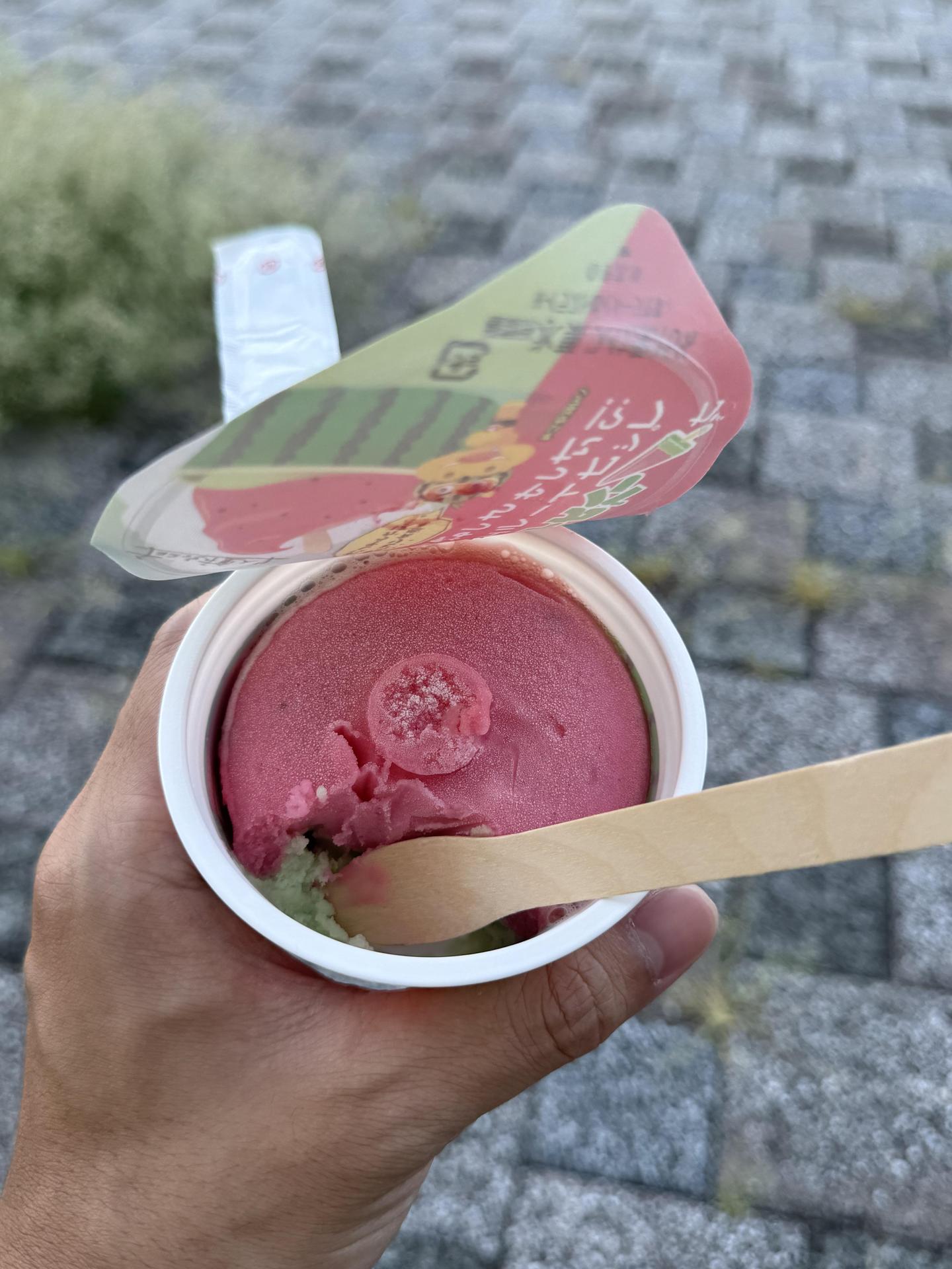 『沒吃到可麗餅,那至少要吃到西瓜冰吧!!』抱著如此想法的我,就這麼走進了一旁的7-11~結果左看右看,都沒有找到那熟悉的身影⋯反而意外發現這個東西w嗯⋯吃起來完全就是西瓜冰沒錯XDD!沒想到還有賣這種形狀的