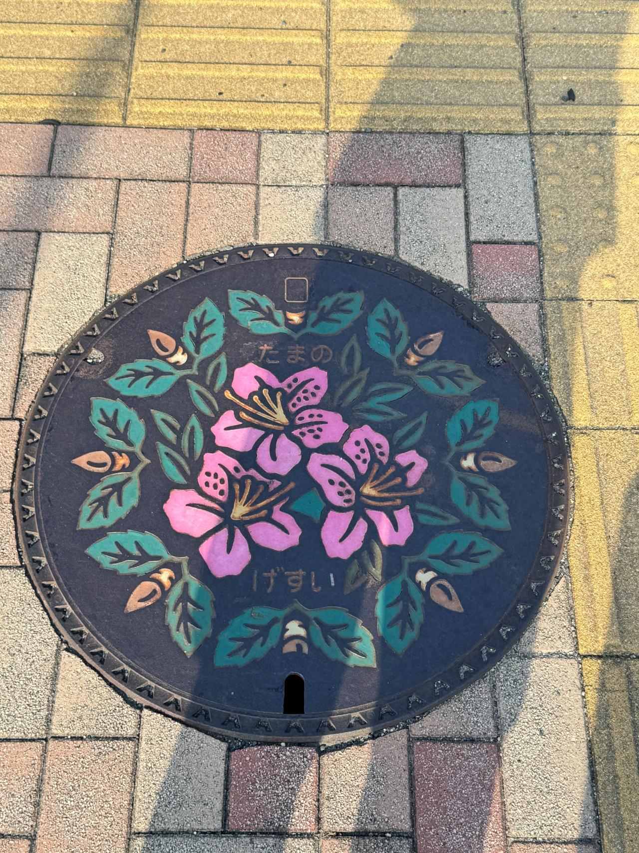 ★宇野港そば看著地上的人孔蓋⋯如果三島上也能像沼津一樣有角色人孔蓋,一定超讚w