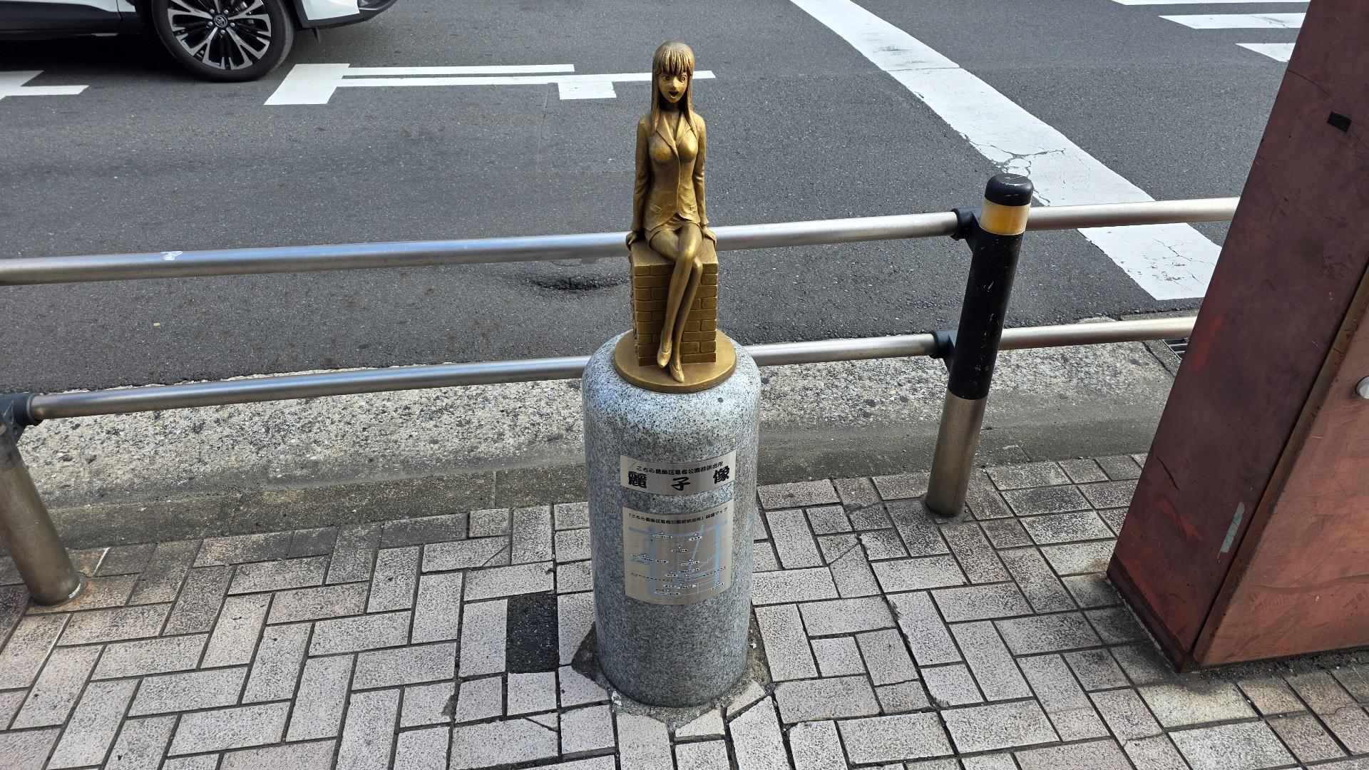 只能陪著友人,硬推著行李在車站周圍的銅像徘徊....
