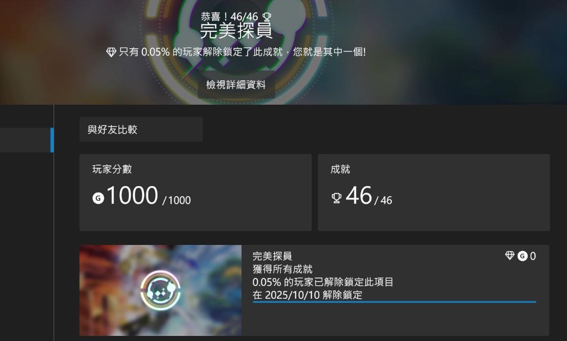 花了八十五個小時將本作全成就拿完