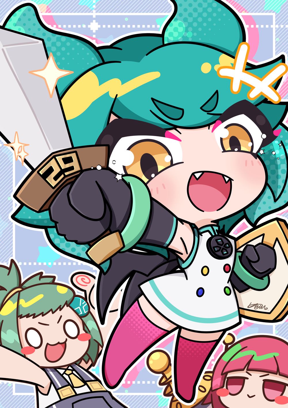 2. 創作發想來源:說到巴哈姆特,就會想到「勇者」,剛好龍娘也有個拿劍持盾的模樣,於是秉持著試水溫的心情就參考了一下,並讓另外兩小隻吉祥物「柚子」&「桃子」位於龍娘身後,做為龍娘身為勇者時最好的夥伴以及後盾。並透過龍娘本身的動作讓整體畫面呈現出一種「躍動感」,藉此表達站聚活動的「活潑」氣息。