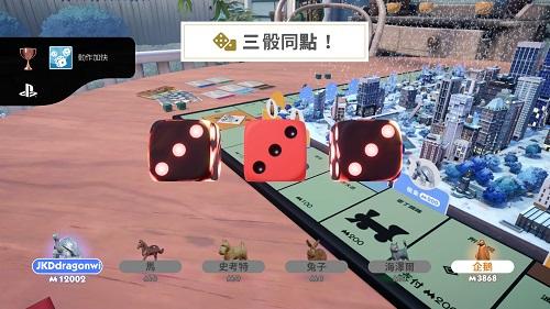 白金獎盃算容易,獎盃條件和新增的新模式玩法有關,但都不會難,這代也有運氣獎盃,如第一順位開始、3個骰子同點、一開始走到所得稅格子、走過所有格子等,所以就看運氣,花費時間也會有所差異,但一直試最終都會拿到獎盃。整體而言,算是輕鬆小品,白金神作。PS4版我約7小時白金這款,再玩PS5版全部要重做一遍觸發獎盃條件,不會秒白或跳獎盃,但這輪就快多了,我較熟知獎盃條件及較快達成方式,我約4小時白金PS5版。