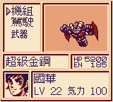 但缺乏精神在本作基本就是被判了死刑 武裝方面也只是比鐵金鋼少了一個金鋼旋風而已 並無特別突出之處