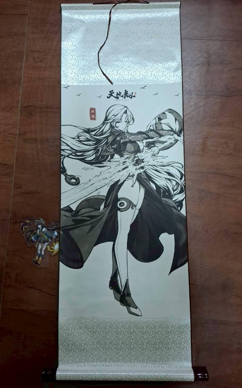 之前買的週邊我都能塞進最大的長背包帶回老家,但是這副掛軸完全放不進去。有一說一,掛軸的天地桿與畫的面料質感很好摸,尤其是這水墨冰璃比起彩圖更有韻味,要不是怕掛著沾灰塵,我就直接掛在門後了。