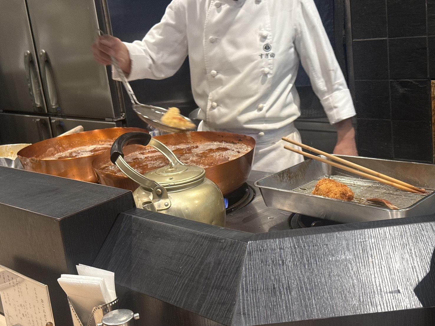 一進入店裡就能看到兩鍋主廚講究為了傳導比較好而準備的銅炸鍋