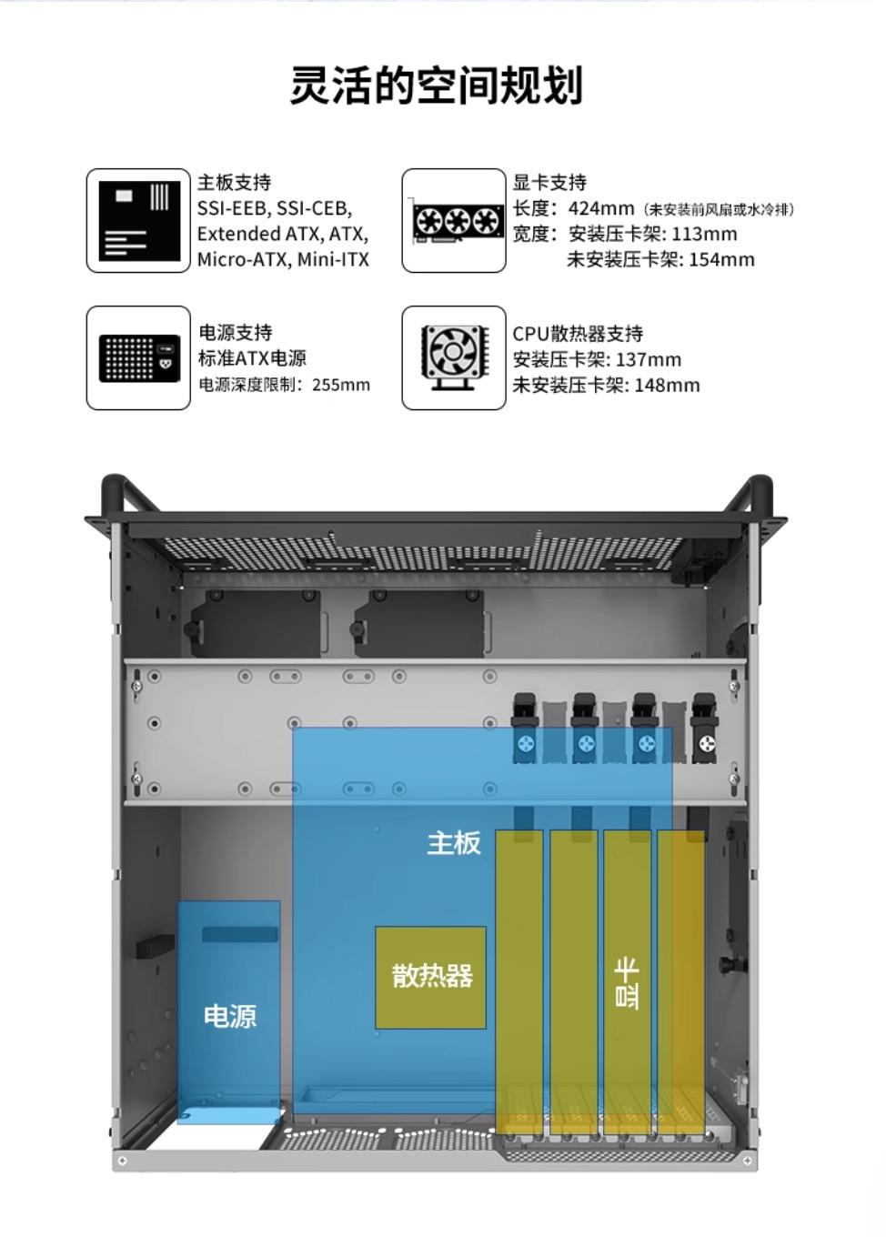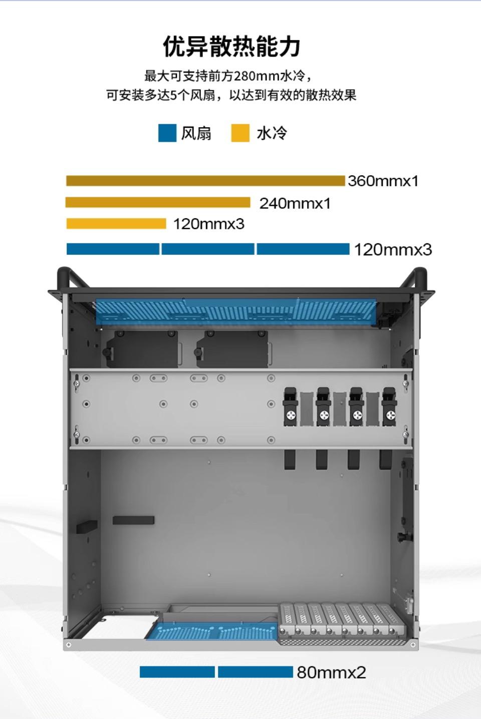 風扇配置前三(12CM)後二(8CM)。