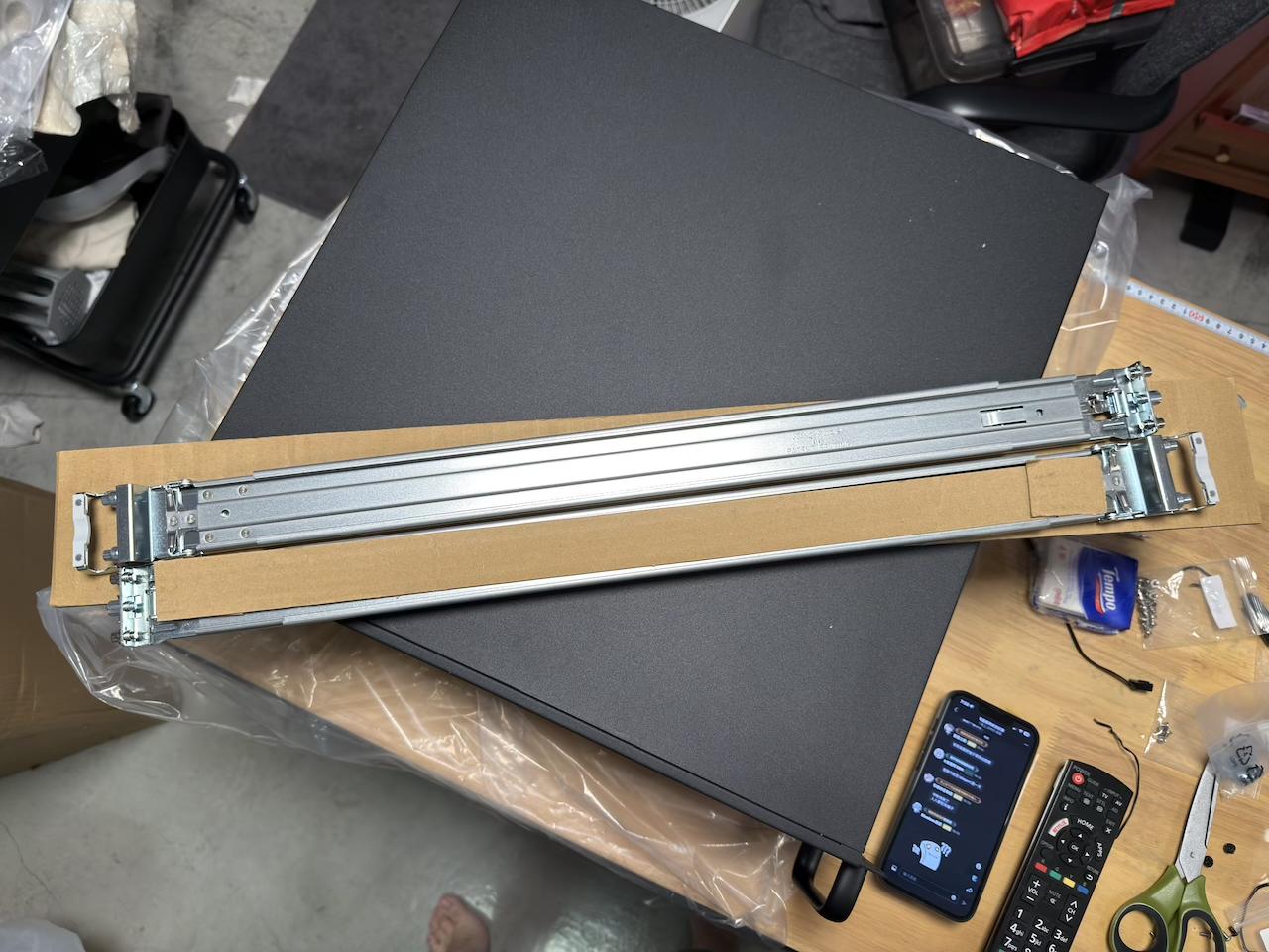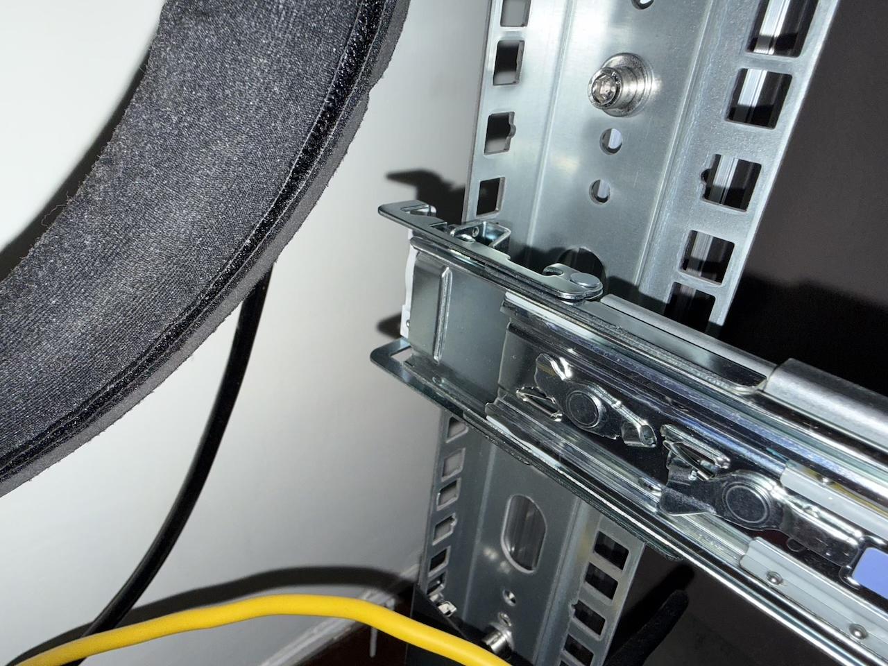 軌道我的確是買了免螺絲安裝的,但是我這裏有一點失預算,就是軌道最少的深度,我的機櫃剛好比這個數字少了1.5 cm。