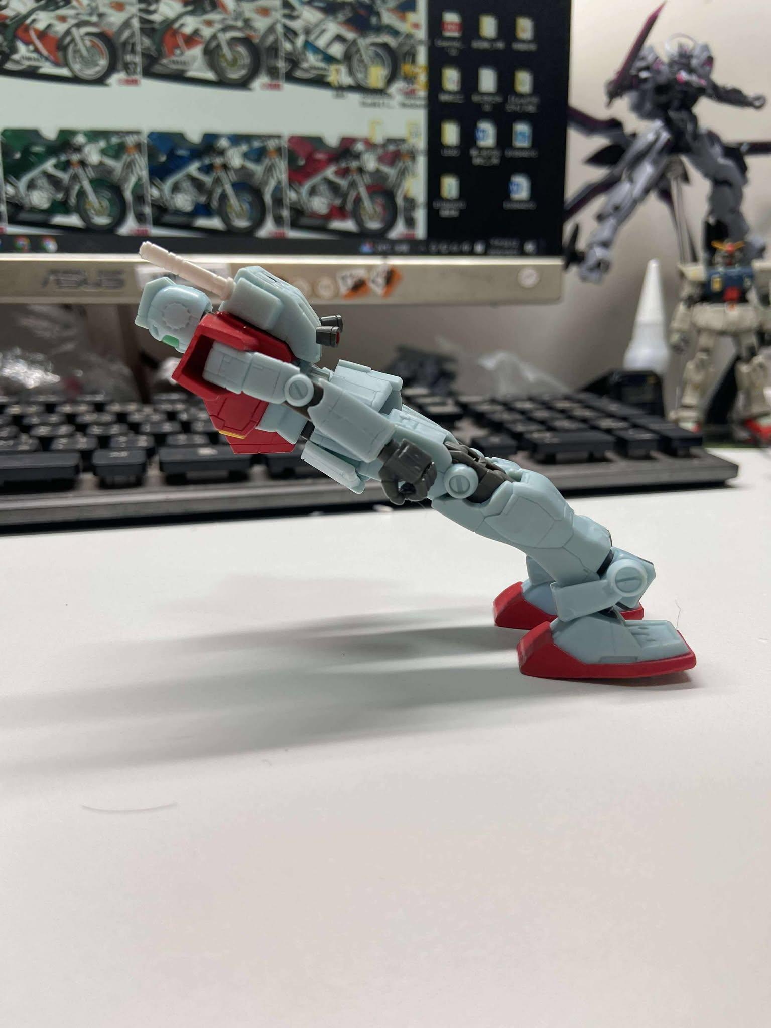 前踢受限於前群甲干涉,這部份也要歸於早期吉姆前群甲設定,就是一大塊裝甲
