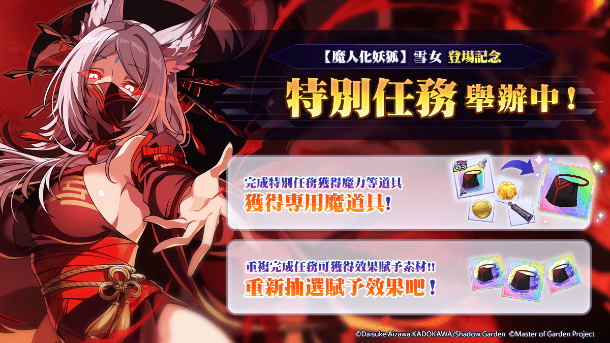 《我想成為影之強者!Master of Garden》推出闇影慶典【魔人化妖狐】雪女