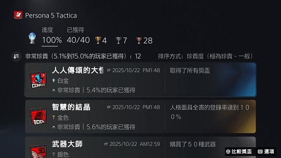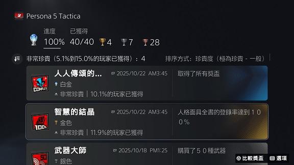 參考下面人格面具全書合成表攻略,注意等級和順序不太一樣,要上下比對一下,把人格面具弄到100%,拿到「智慧的結晶」獎盃及白金。