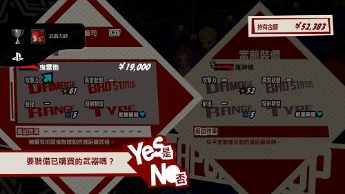[注意3]注意新遊戲+,等級不會繼承,但人格面具只有在新遊戲+才能達成100%,會新增12個人格面具,而且要最高要等級96才能取得,所以不用在這輪練功升等級到99。記得買最好的裝備及改造給每個角色,裝備會繼承到下一輪。人格面具在破關前把這輪可以合出的都合出來,因為身上的人格面具不會繼承。