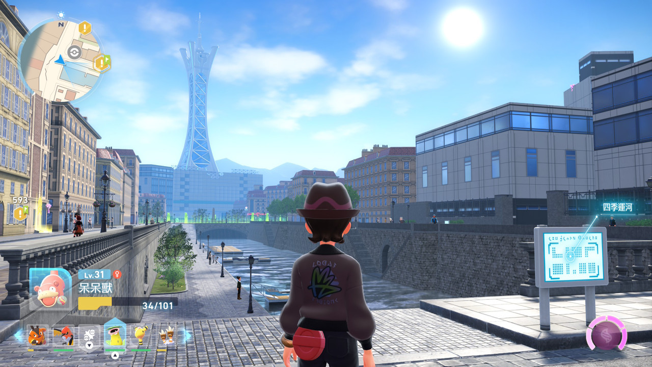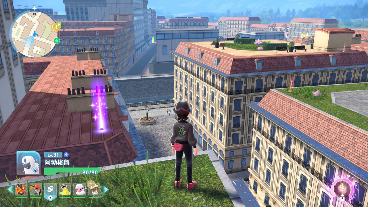 整體來說挺好玩,遊戲節奏快,25小時左右能通關,對普通、輕度、單機向寶可夢玩家來說(我),體驗不賴;對習慣傳統玩法的玩家來說,倒是需要熟悉一下從回合制變成即時制的戰鬥方式。玩點很明確,簡單濃縮:寶可夢抓好抓滿、動作對戰打好打滿、屋頂鷹架走好走滿,再順便看個劇情與 NPC 表現。以下就聊一下遊戲特色與玩後感想。