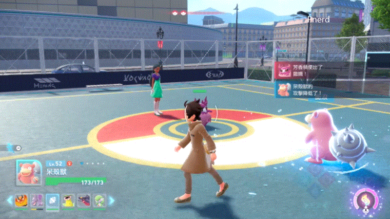 移動位置是新機制。比如說敵人來一個場域傷害的招式,就得拉開寶可夢,不是呆呆的站著送血。寶可夢會跟著玩家移動,但如同寵物一樣,會有些許延遲而非完全的同步行動;看到敵人準備發招,提前拉走避開也是一種策略,但這又延伸出可能打不到對方,諸如此類的考量因素。