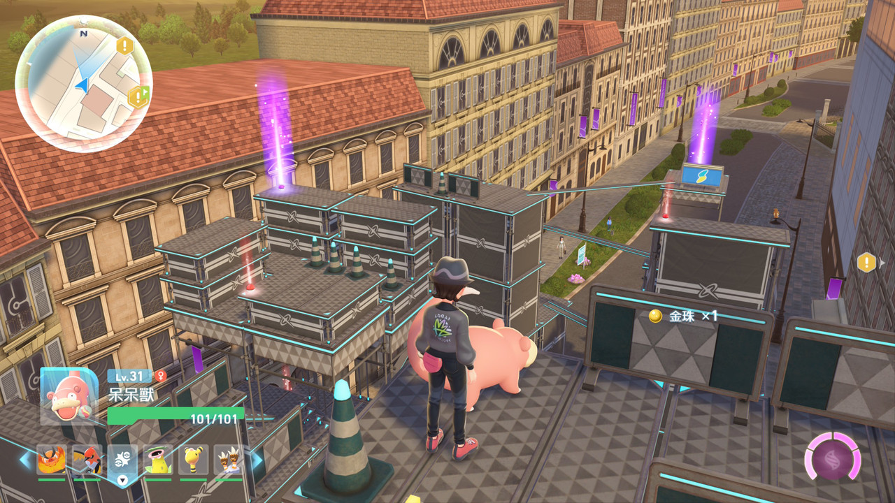 而螺絲,一種用來兌換增加經驗值、提升抓寶率、金錢等重要加成道具的物品,則放在需要平台跳躍的鷹架上,很多玩家臭的點,對我這種常玩老任平台跳躍遊戲的粉來說,卻是玩法上的加分,新穎的體驗。