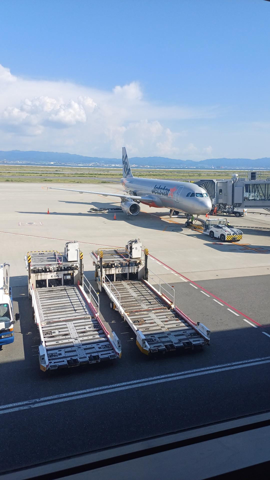沒搭過傑星到了才知道要自助報到跟托運,報到沒問題但托運不知為何我的沒辦法用,最後工作人員用人工方式才搞定,之前看這班平均都晚十幾分才到,不過今天可能是順風加上提早完成登機,最後不但沒延誤還提早二十分到,領行李時看到表定早幾分出發的樂桃甚至還沒落地