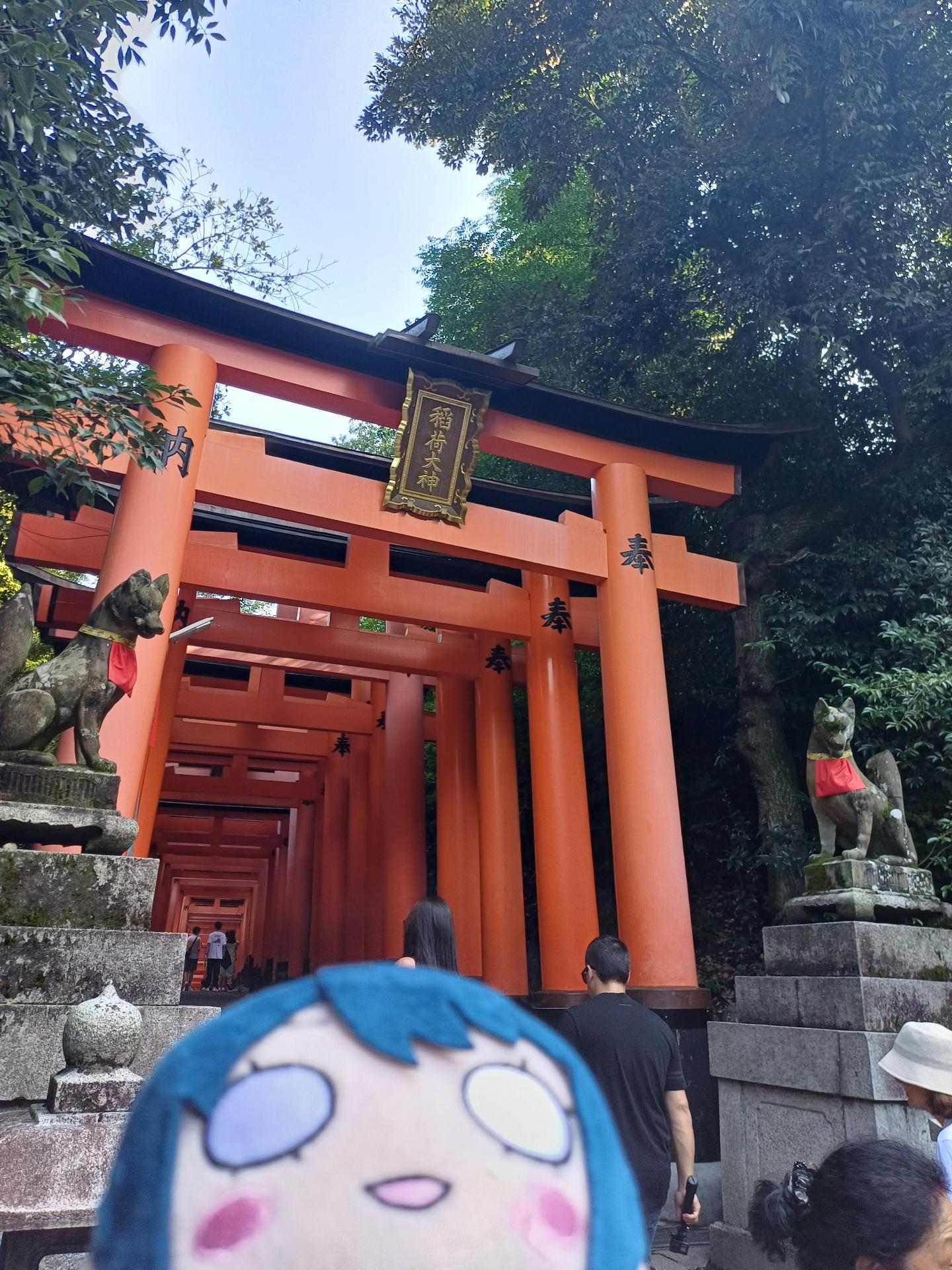 再往上走即可到達著名的千本鳥居,如果想拍到沒人的畫面可能要一直往上爬,朋友去年就這樣趴了一圈稲荷山再下來,大概要兩小時左右 這次時間有限就沒有爬了