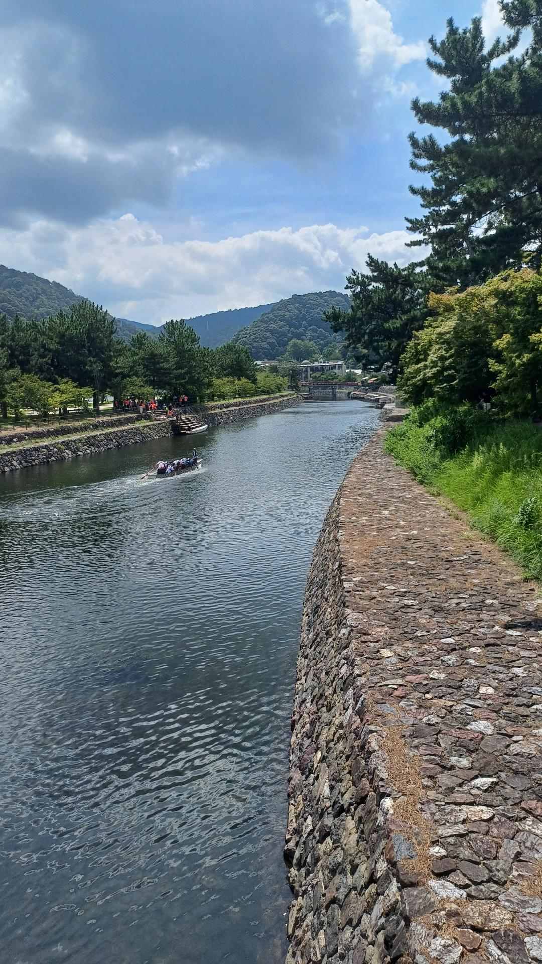 一開始以為只是像嵐山那邊的觀光船,朋友說那是龍舟,一開始我還不相信,認真看才發現真的是龍舟,原來日本也有在划龍舟嗎