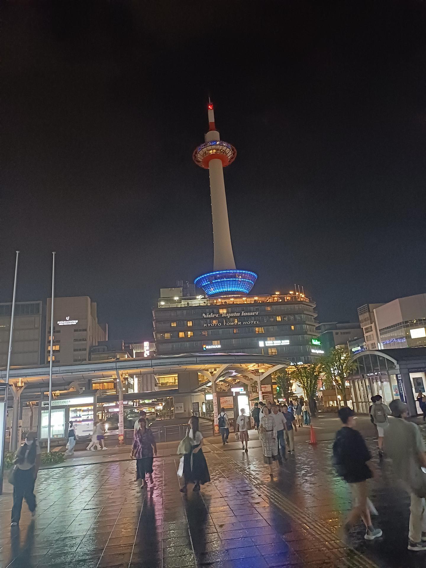 下雨加上很多人都上街觀賞,公車塞車嚴重誤點,到京都站已經九點多了