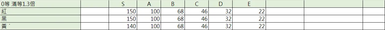 黃: 全都1.5倍,依賴操作的黃A配紅黑組合可以走到6以後