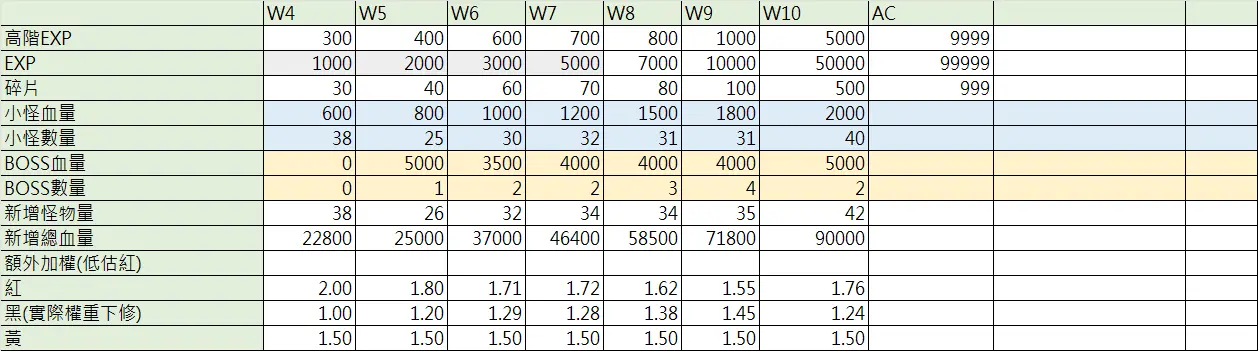 紅B+黑C+黃A,然後結論是少數機會拿W9獎勵(13000HP散布在<19隻小怪/BOSS上)