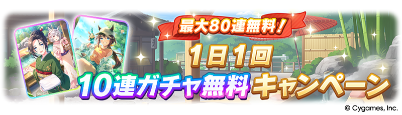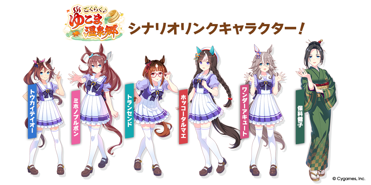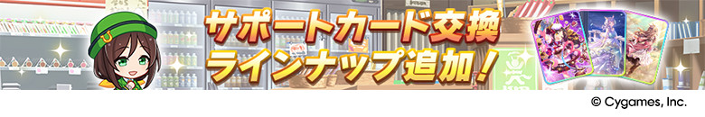 新支援卡池 PU 角色則為 SSR 保科健子 [ゆるり、ゆこま旅館]保科健子 以及 SSR 東海帝皇 [天才的ユートピア]トウカイテイオー 。