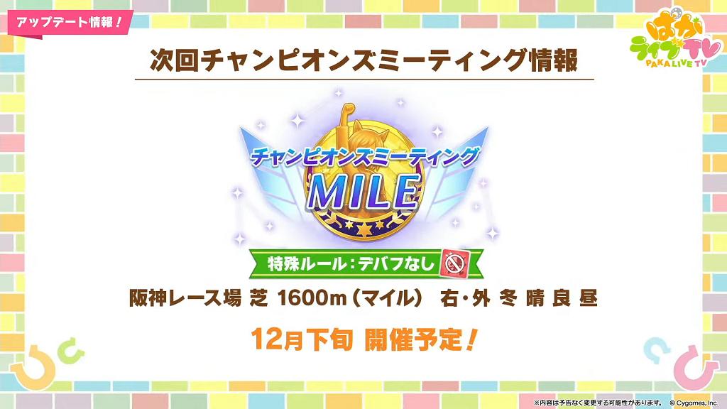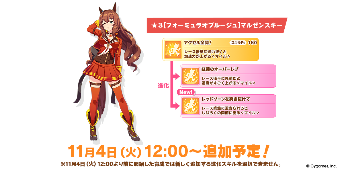 11/04 預定追加 1 名馬娘的可選進化技能。