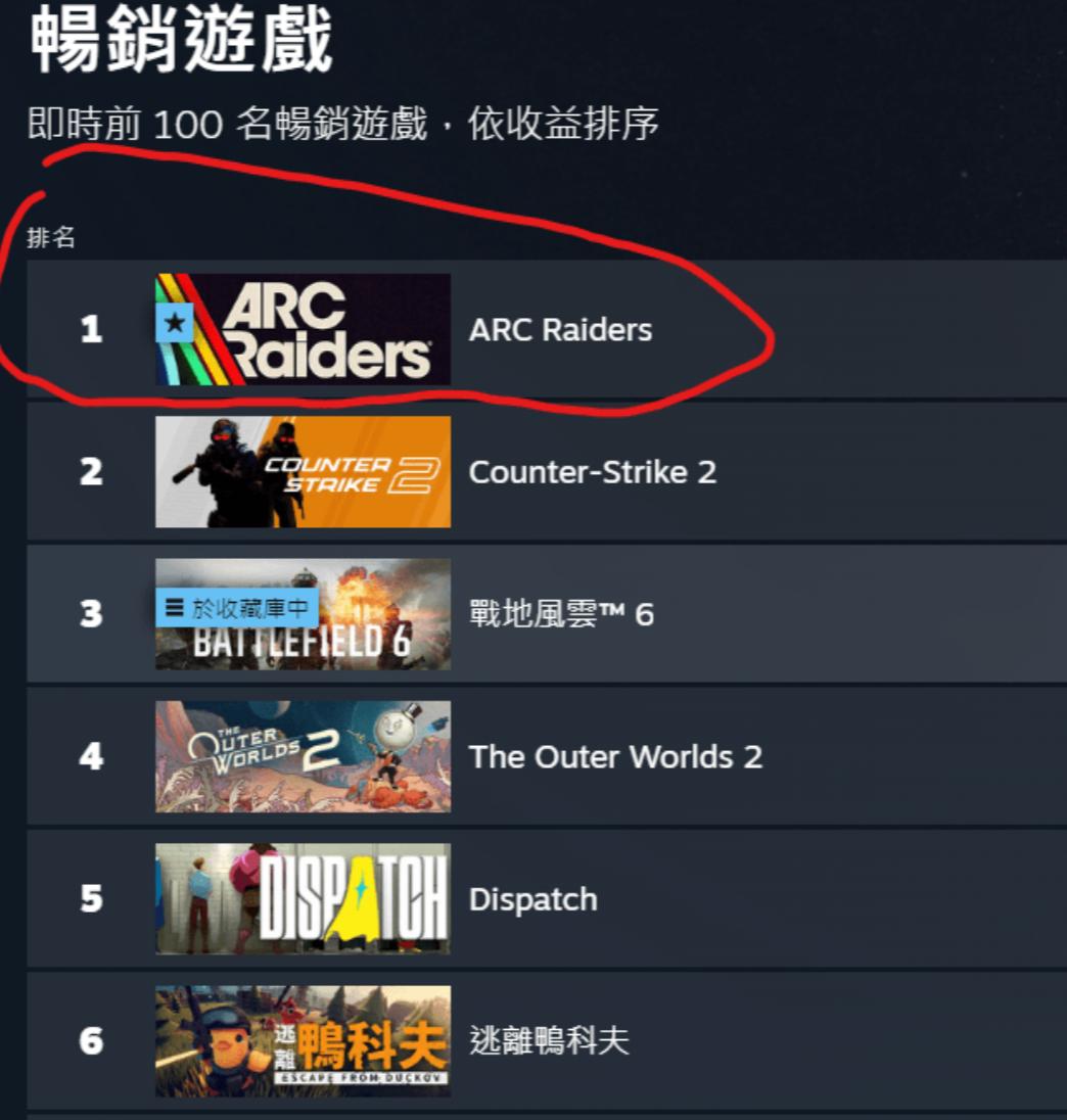老DICE跟新DICE的對決超越《戰地風雲6》《ARC Raiders》Steam同上突破46萬人