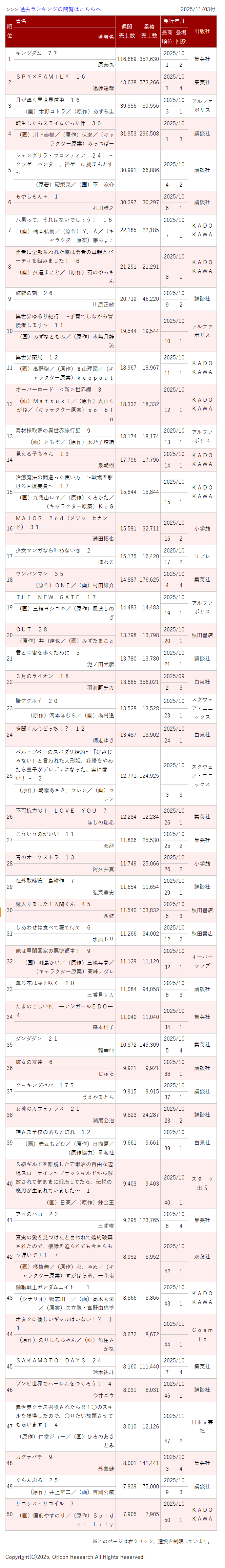 去年神樂得獎前是四週八萬四,得獎後的新卷四週十二萬出頭,這增幅快接近四萬了。於是心想:既然神樂得獎的增幅有這麼多,那這次魔男挑戰四週十萬應該也沒問題吧?結果居然不到八萬…