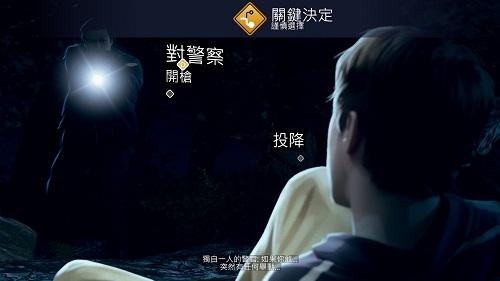 完成QTE,「杰伊」到下面關鍵決定,選「對警察開槍」,就會跳「無法回頭」獎盃,繼續第5章。